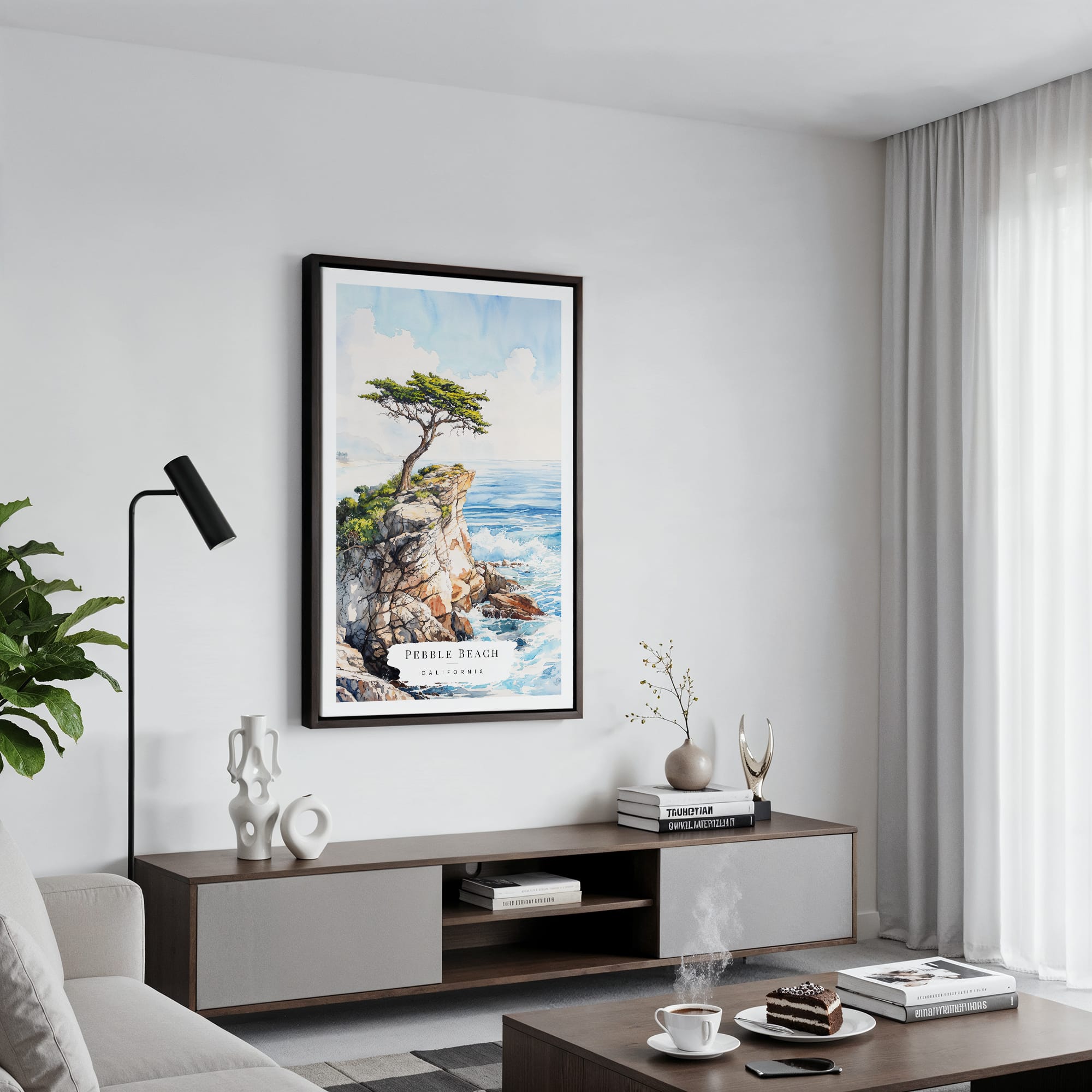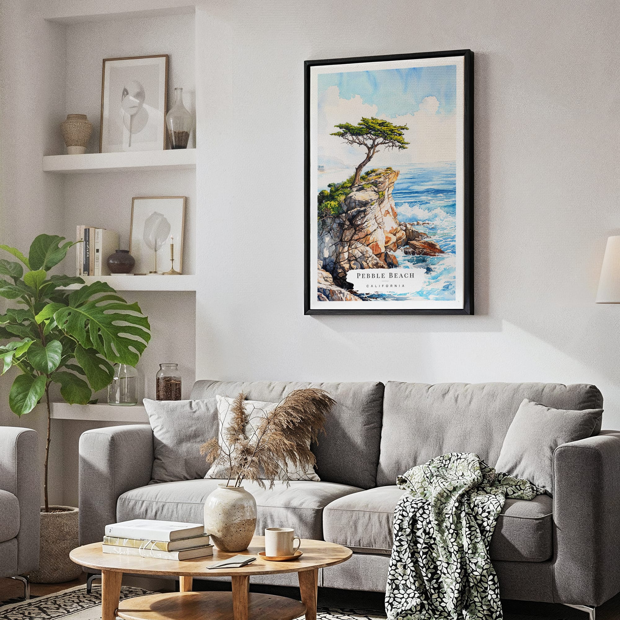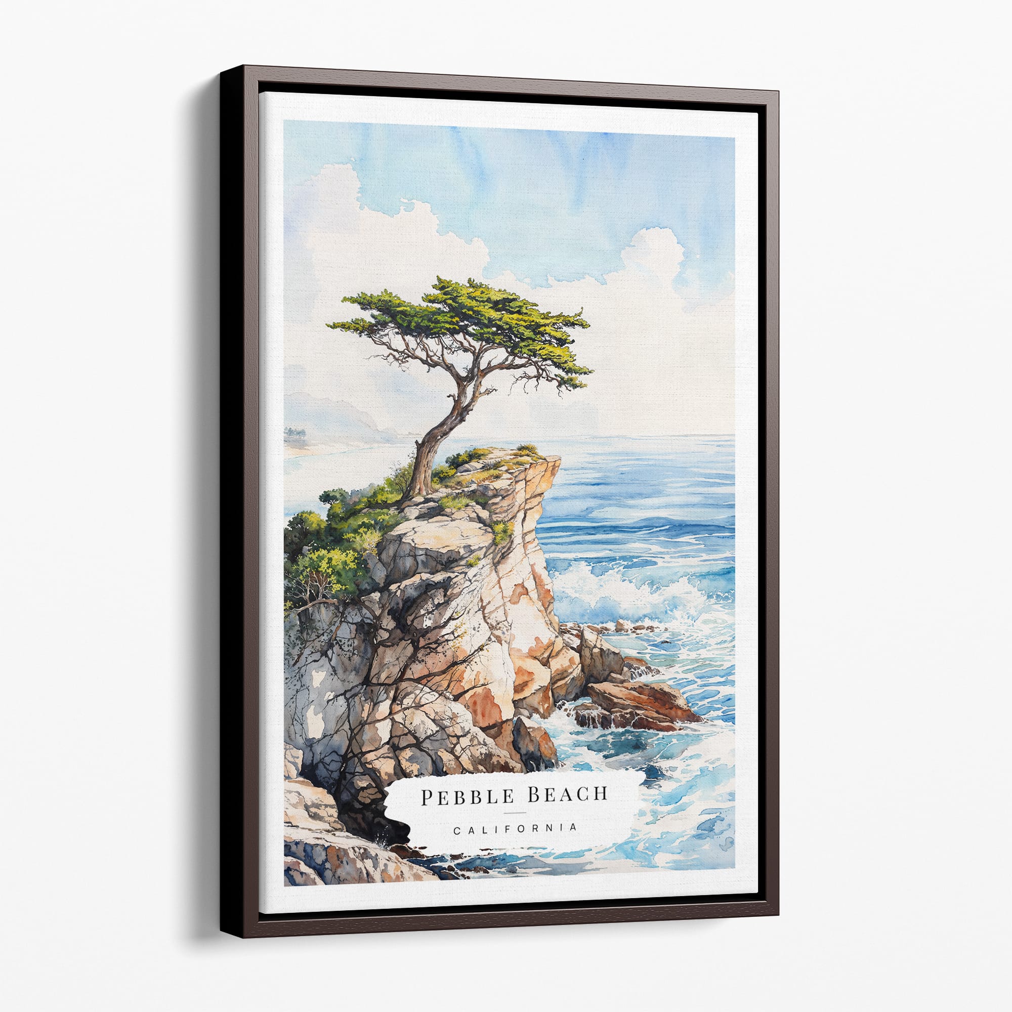 Pebble Beach California Watercolor Canvas Print – Scenic Lone Cypress Wall Art