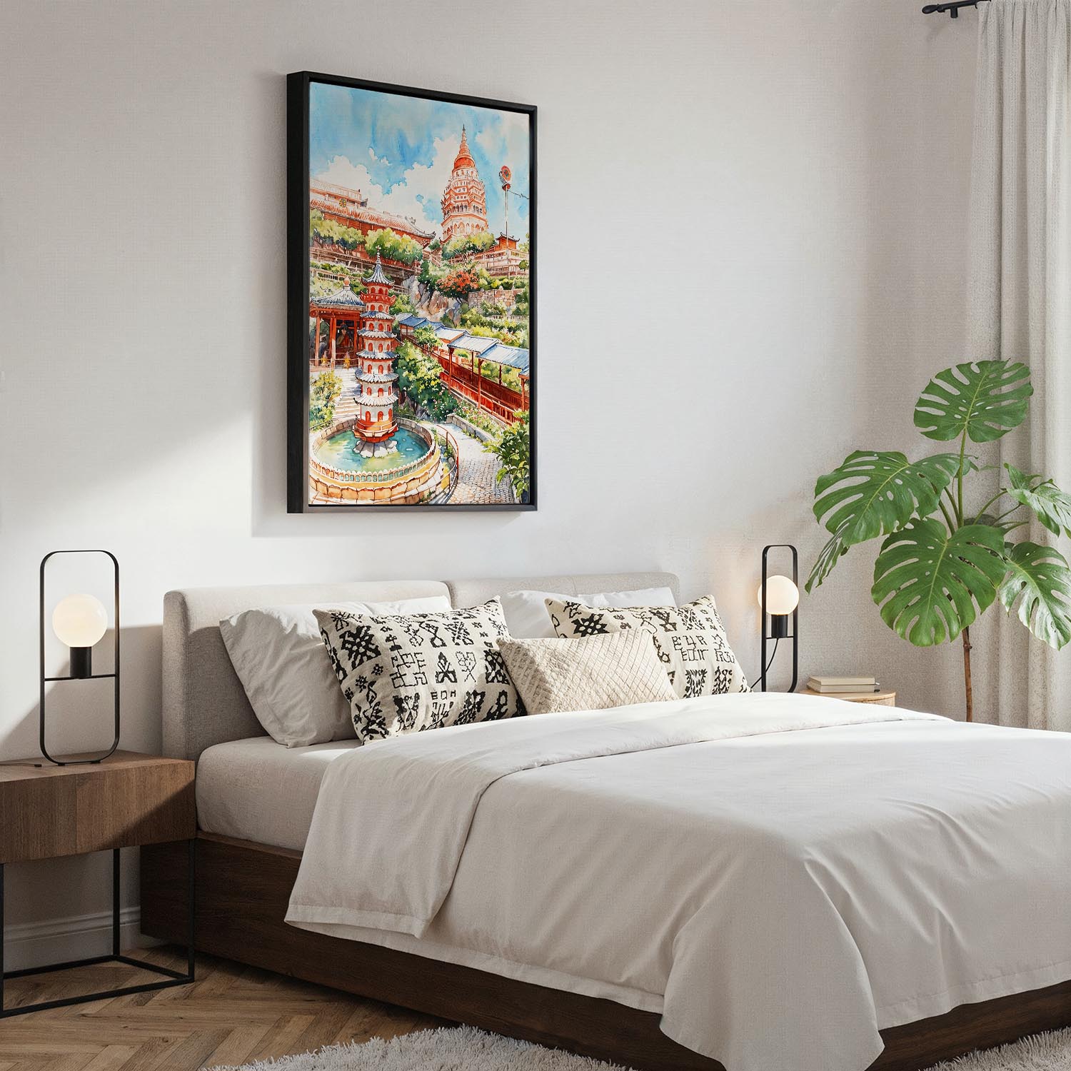 Penang Malaysia Watercolor Canvas Print – Vibrant Cultural Landscape