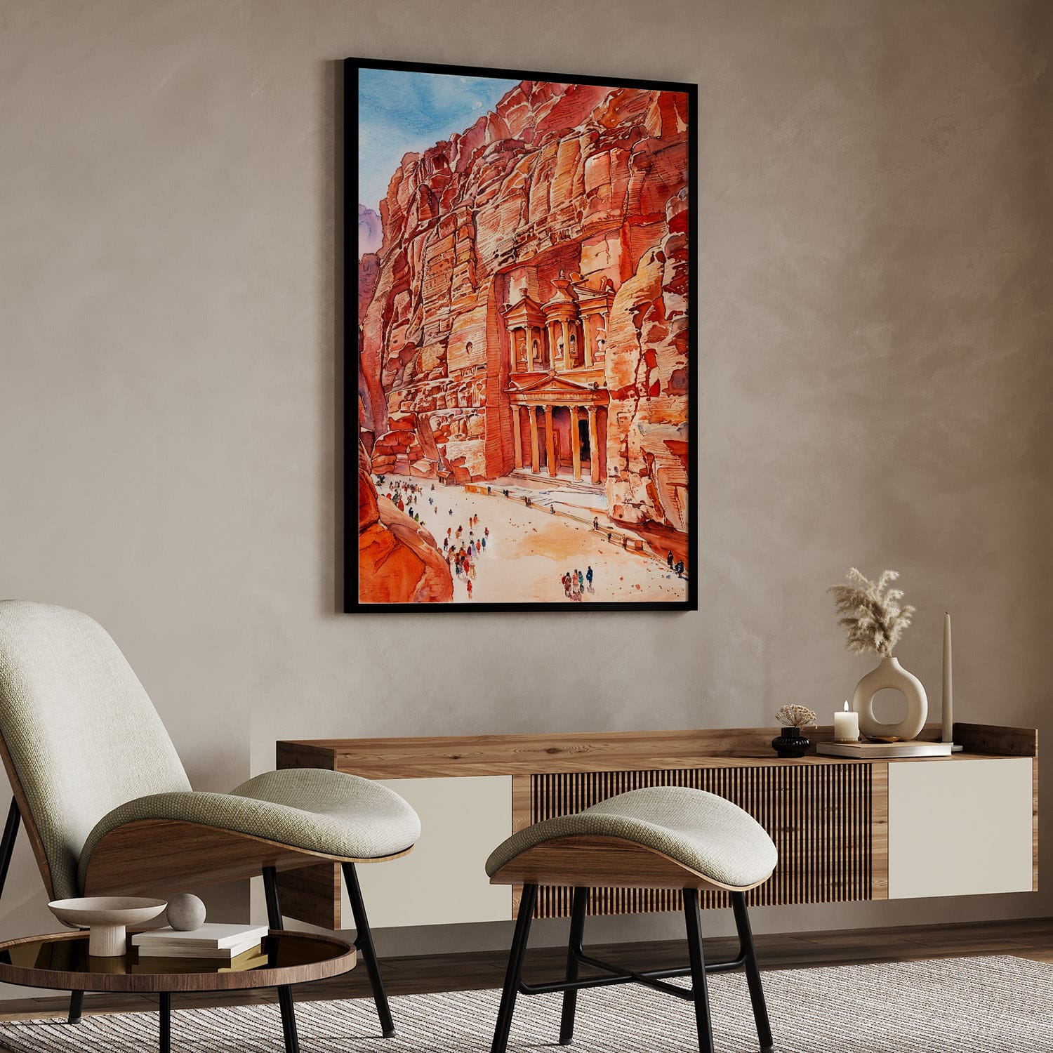 This artwork showcases the stunning architecture of Petra set against warm desert hues, bringing a sense of history and elegance to your space. The detailed design enhances modern and traditional decor alike, offering a warm and inviting atmosphere. Provided as a high-resolution digital file, you can print this piece in various sizes at home or through a local print shop. Ideal for living rooms, bedrooms, or office decor, this downloadable art allows for instant enjoyment and a personal touch to your walls.