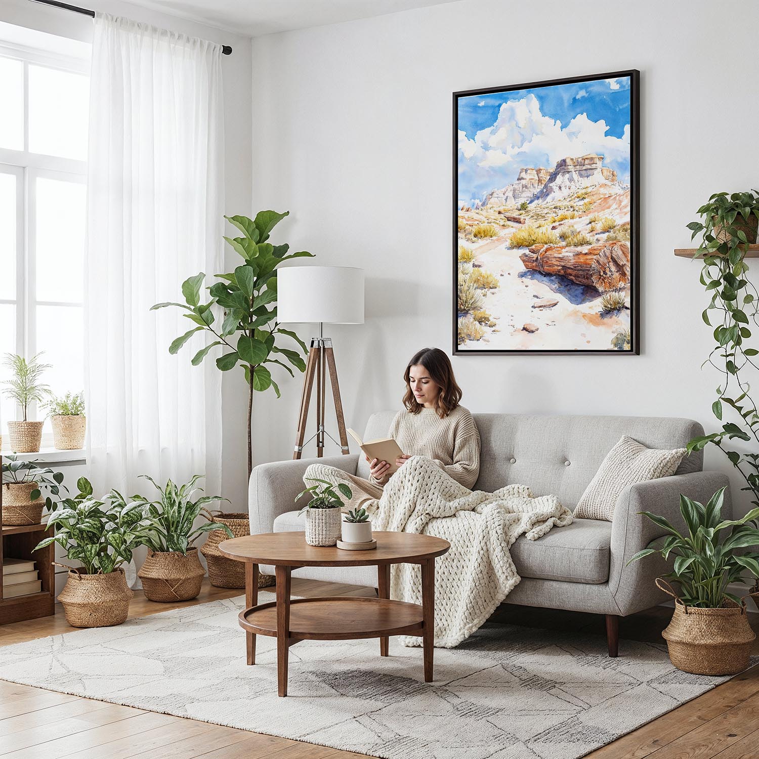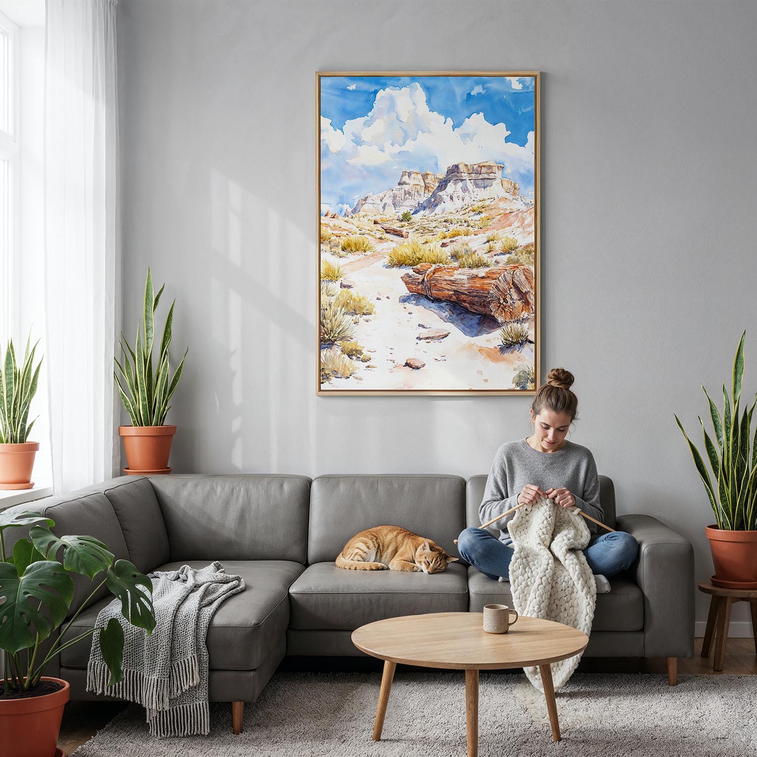 Bring the beauty of the Petrified Forest into your home with this watercolor canvas print. Its vivid colors and textures create a peaceful vibe, perfect for living rooms, bedrooms, or offices.