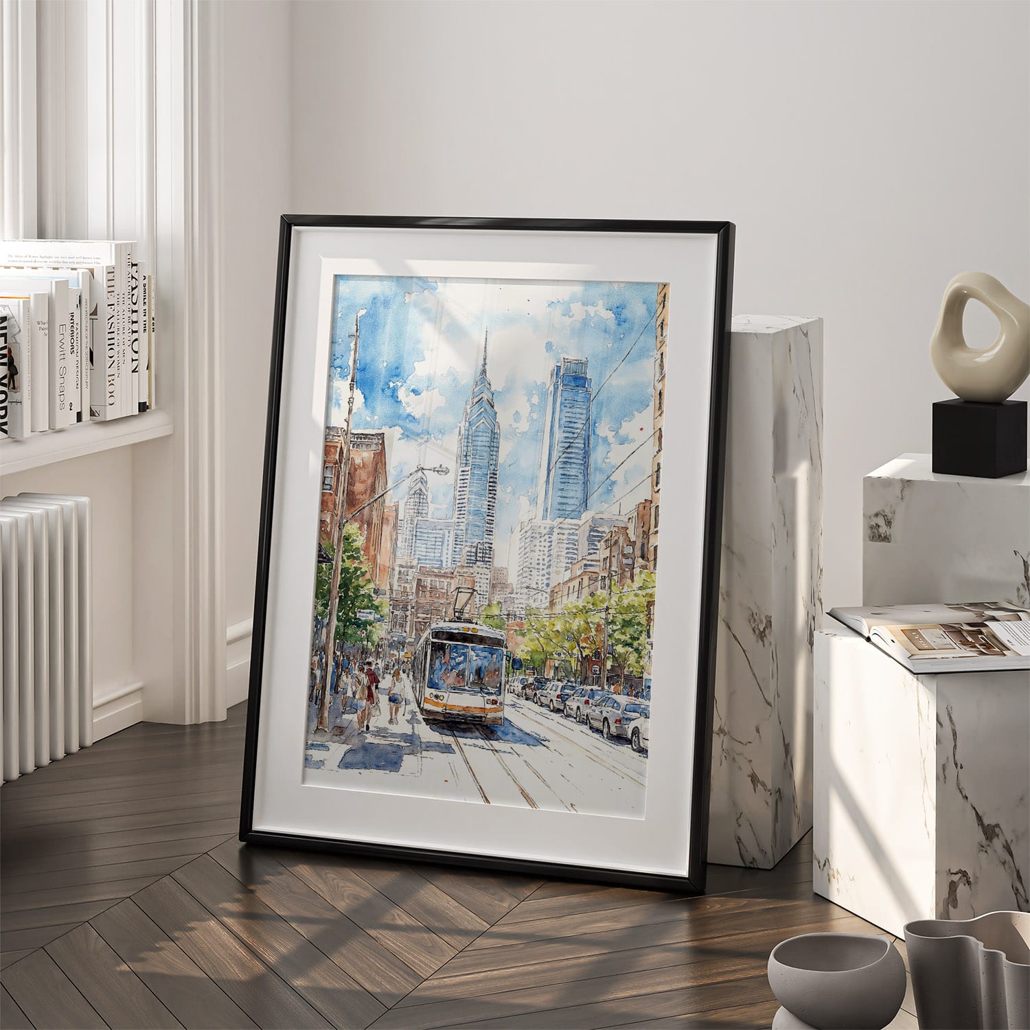 Philadelphia Downtown Watercolor Art – Vibrant Cityscape Digital Download