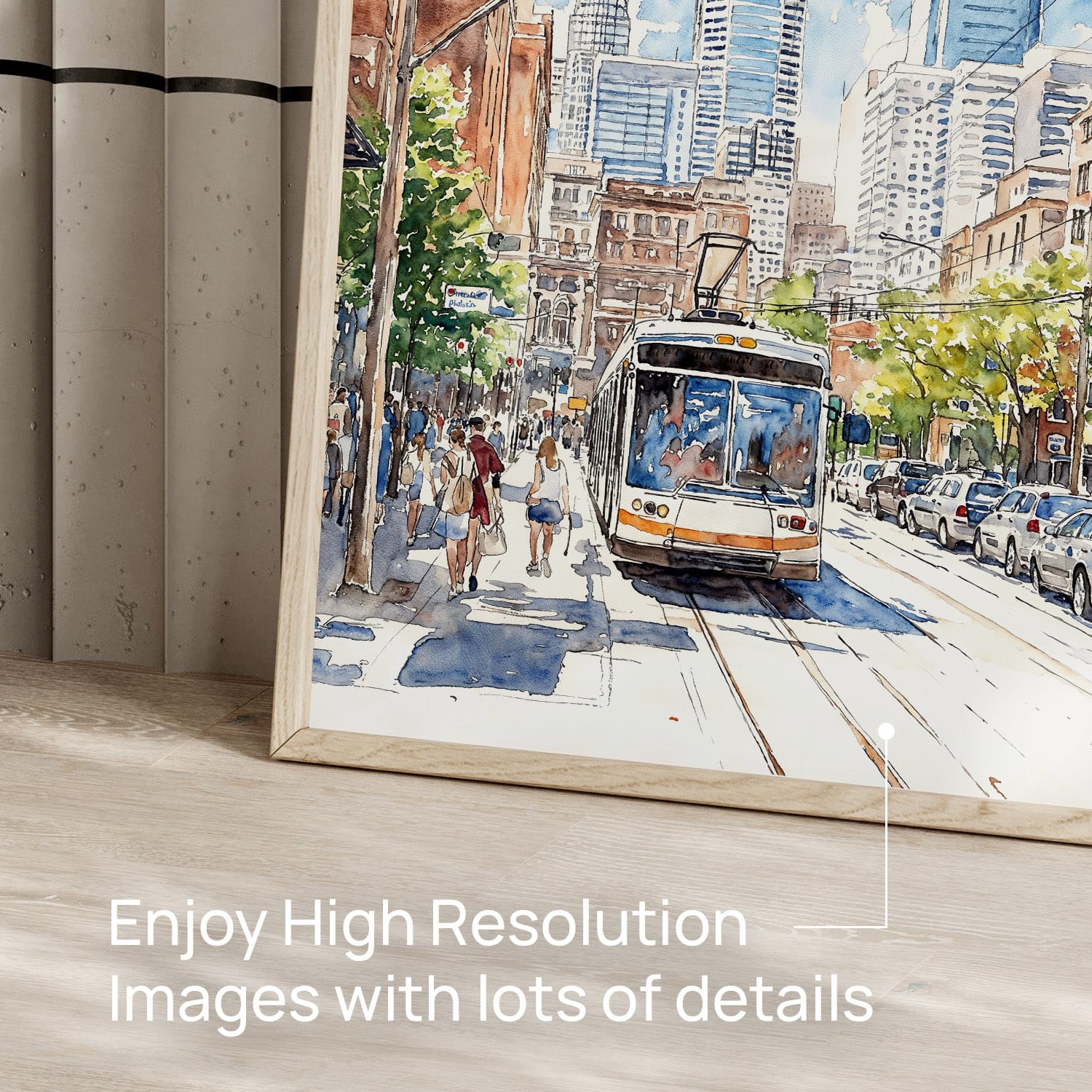 Capture the energy of Philadelphia with this downtown watercolor digital download wall art. The lively scene features a blend of urban colors and soft details, making it easy to print and display in your home or office.