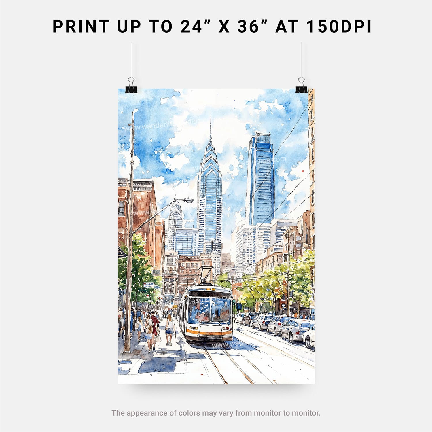 Philadelphia Downtown Watercolor Digital Download Wall Art
