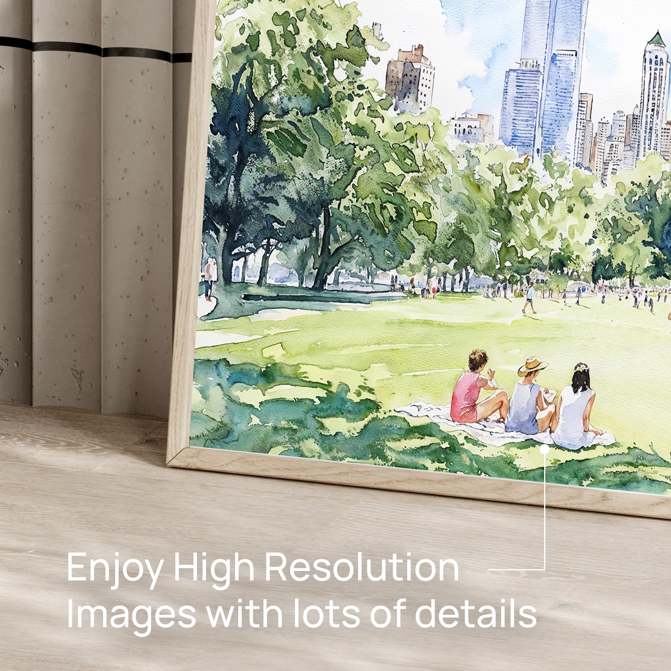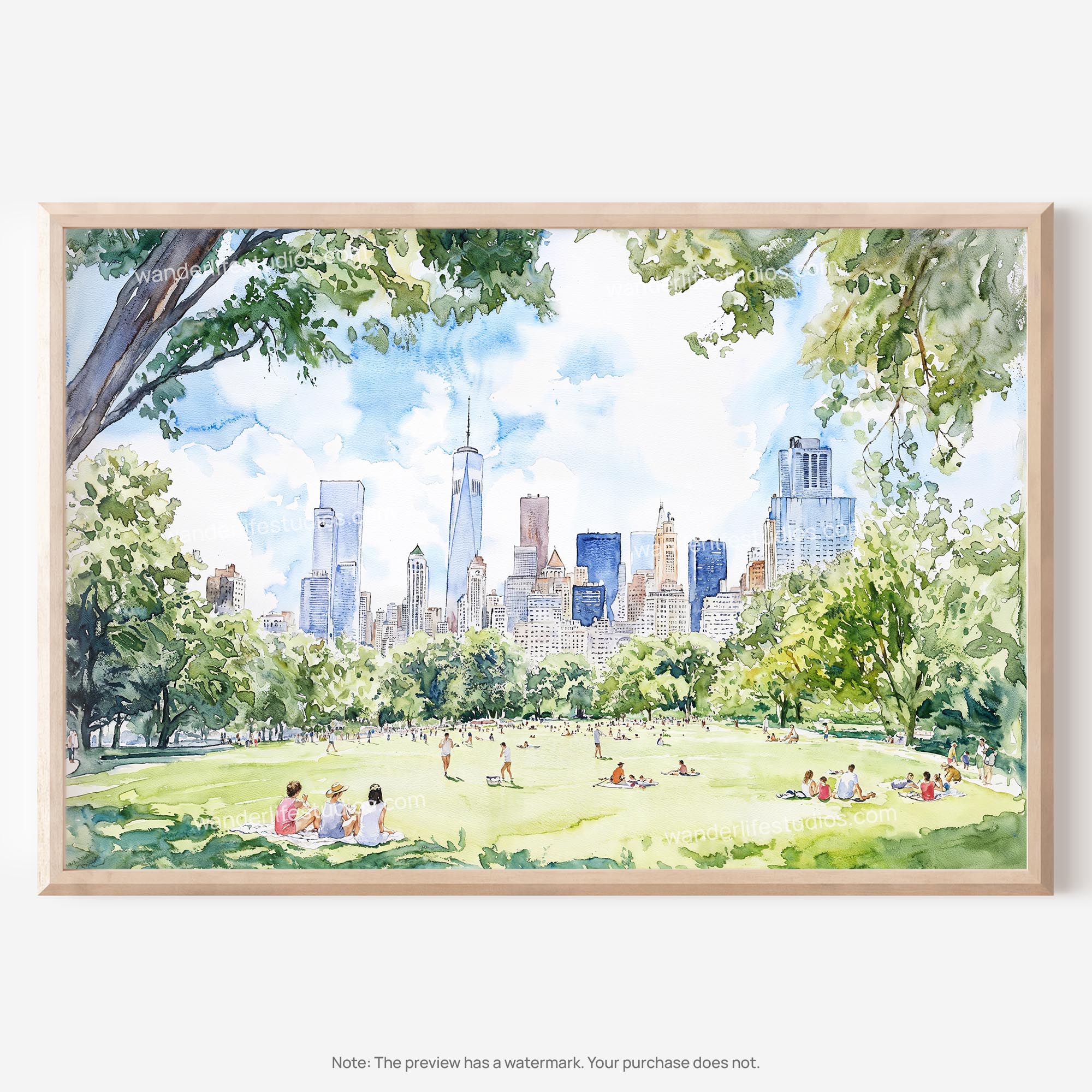 Picnic in Central Park Watercolor Art – Digital Download for Home Decor