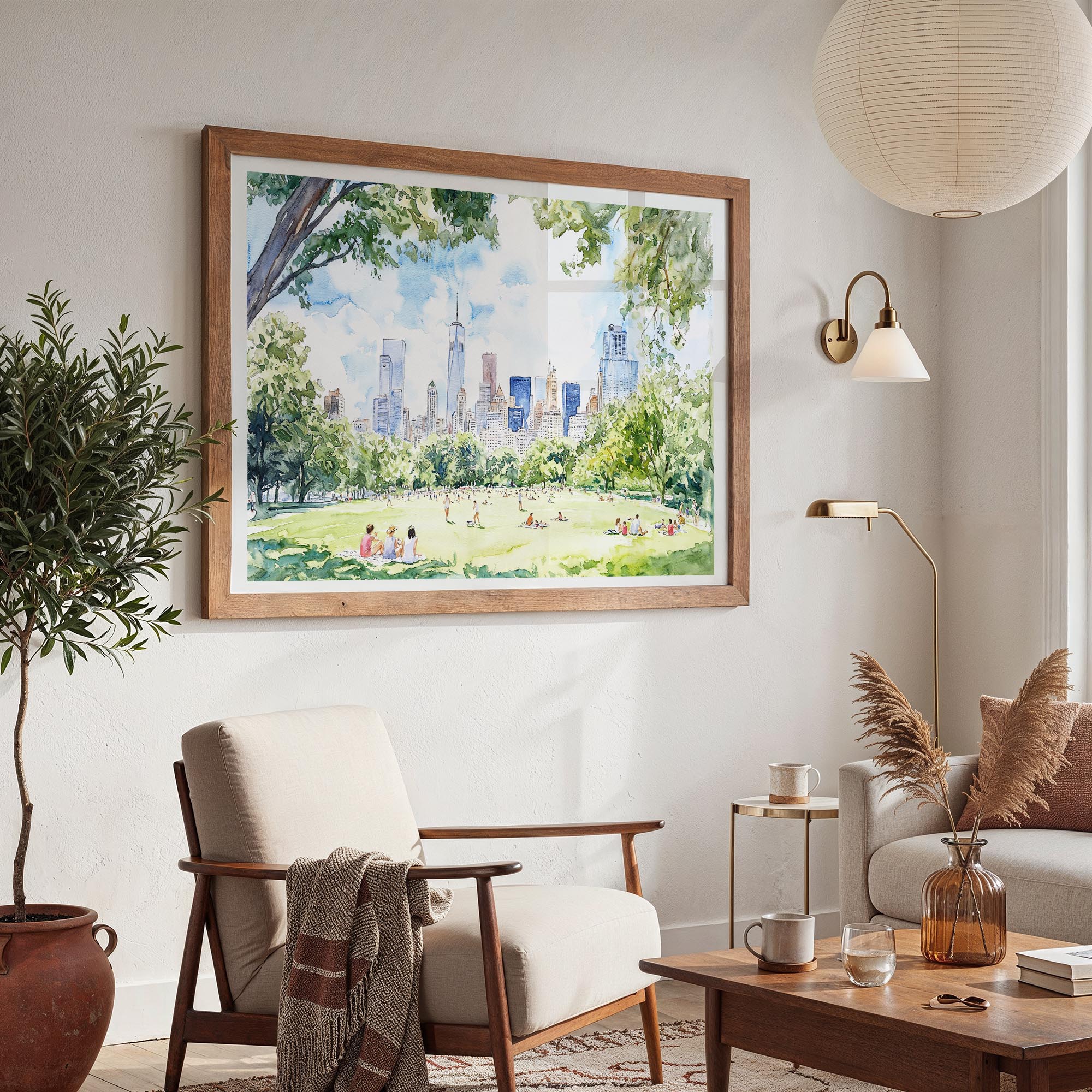 This inviting piece of artwork showcases a lively picnic in Central Park, featuring lush greenery and the iconic skyline of New York City. Its warm colors and serene scene create a relaxing atmosphere, reminiscent of leisurely afternoons spent outdoors. Provided as a high-resolution digital file, it’s simple to print at home or through a local shop. Ideal for living rooms, bedrooms, or offices, this instant download brings a piece of New York’s charm into your home with ease and flexibility.