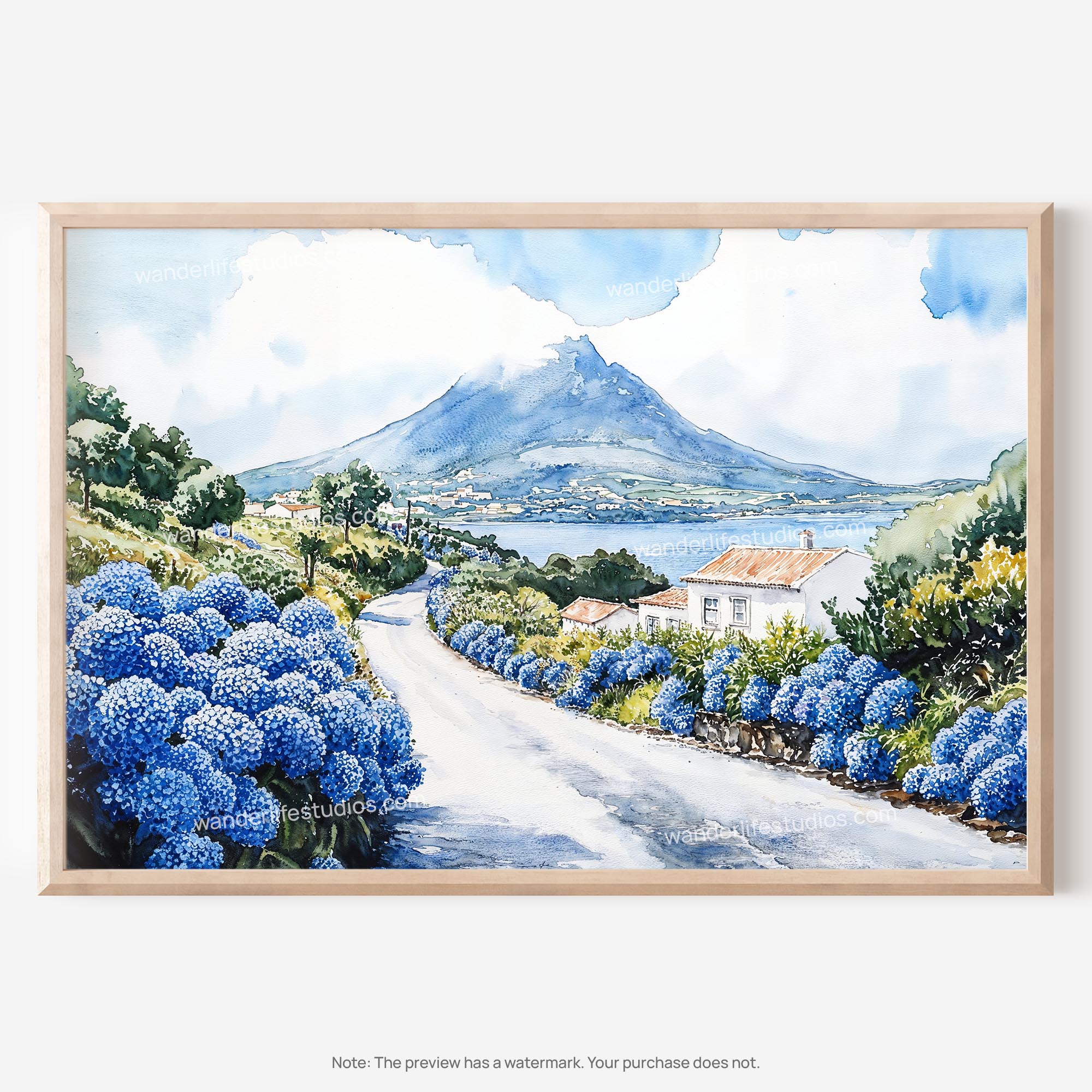 Pico Island Portugal Watercolor Wall Art | Coastal Landscape Digital Download for Home Decor