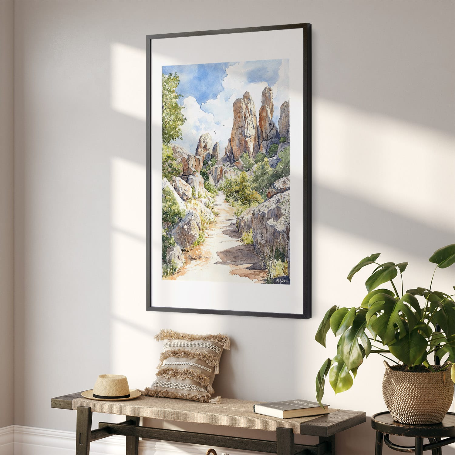 Pinnacles National Park Watercolor Art Print – Digital Download Landscape Wall Decor