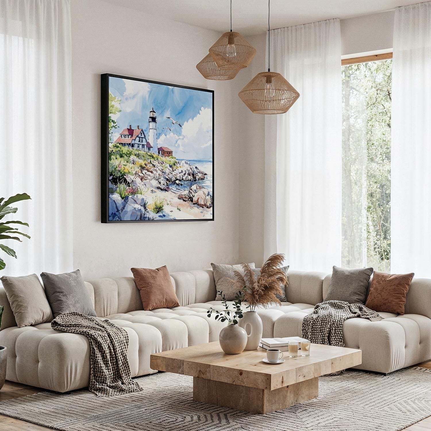 This square canvas print features the iconic Portland Head Light, capturing Maine’s coastal beauty. Its balanced format allows for easy styling above sofas or in hallways, making it a great addition to your home.
