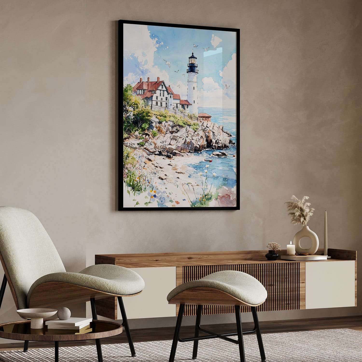 Portland Maine Watercolor Art – Coastal Landscape Digital Download