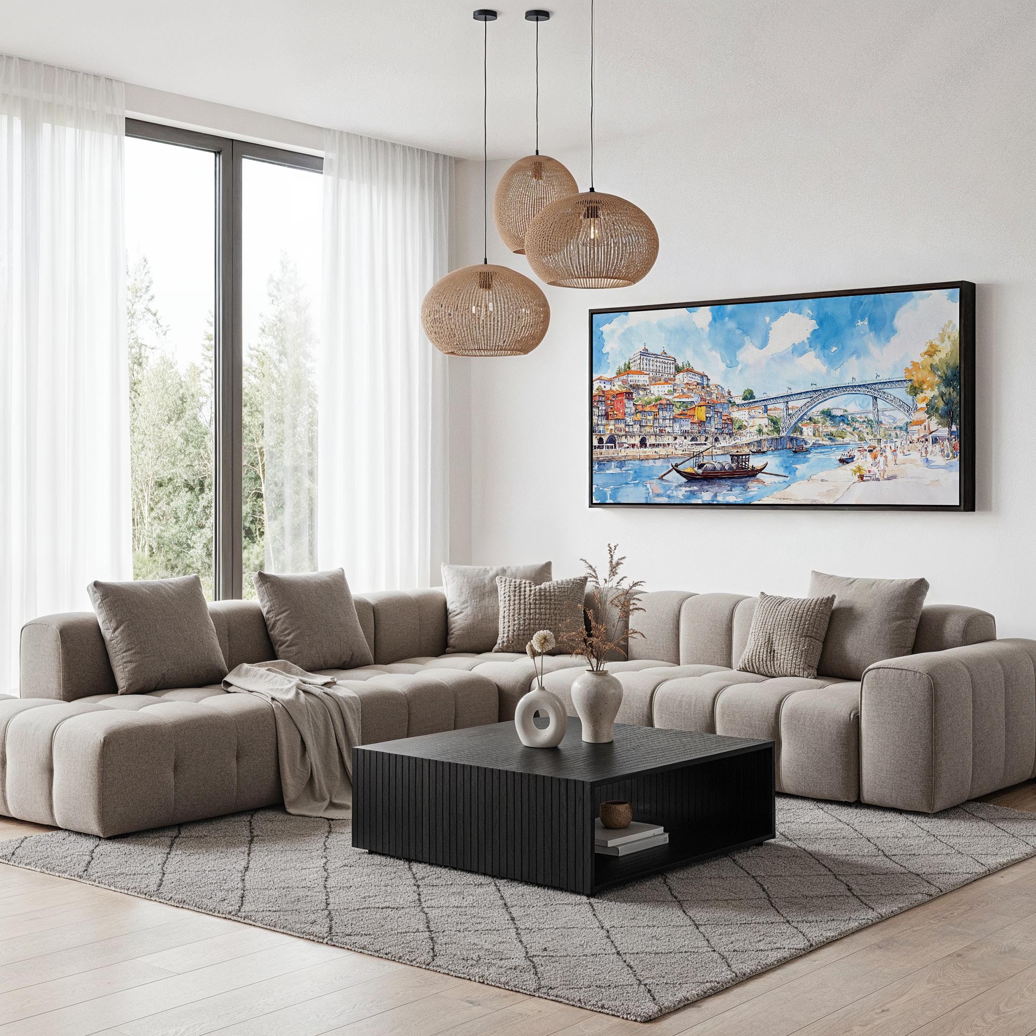 This artwork captures the lively essence of Porto’s Ribeira district, showcasing colorful buildings alongside the shimmering river. The wide 2:1 panoramic shape enriches your walls, creating an expansive feel in any room. Made with care in the US, this premium canvas is hand-stretched over solid wood bars, using fade-resistant inks and a matte finish for durability. Ideal for hanging above sofas or in hallways, it combines aesthetics and craftsmanship beautifully. A delightful addition for personal enjoyment or a thoughtful gift for those who cherish vibrant cityscapes.