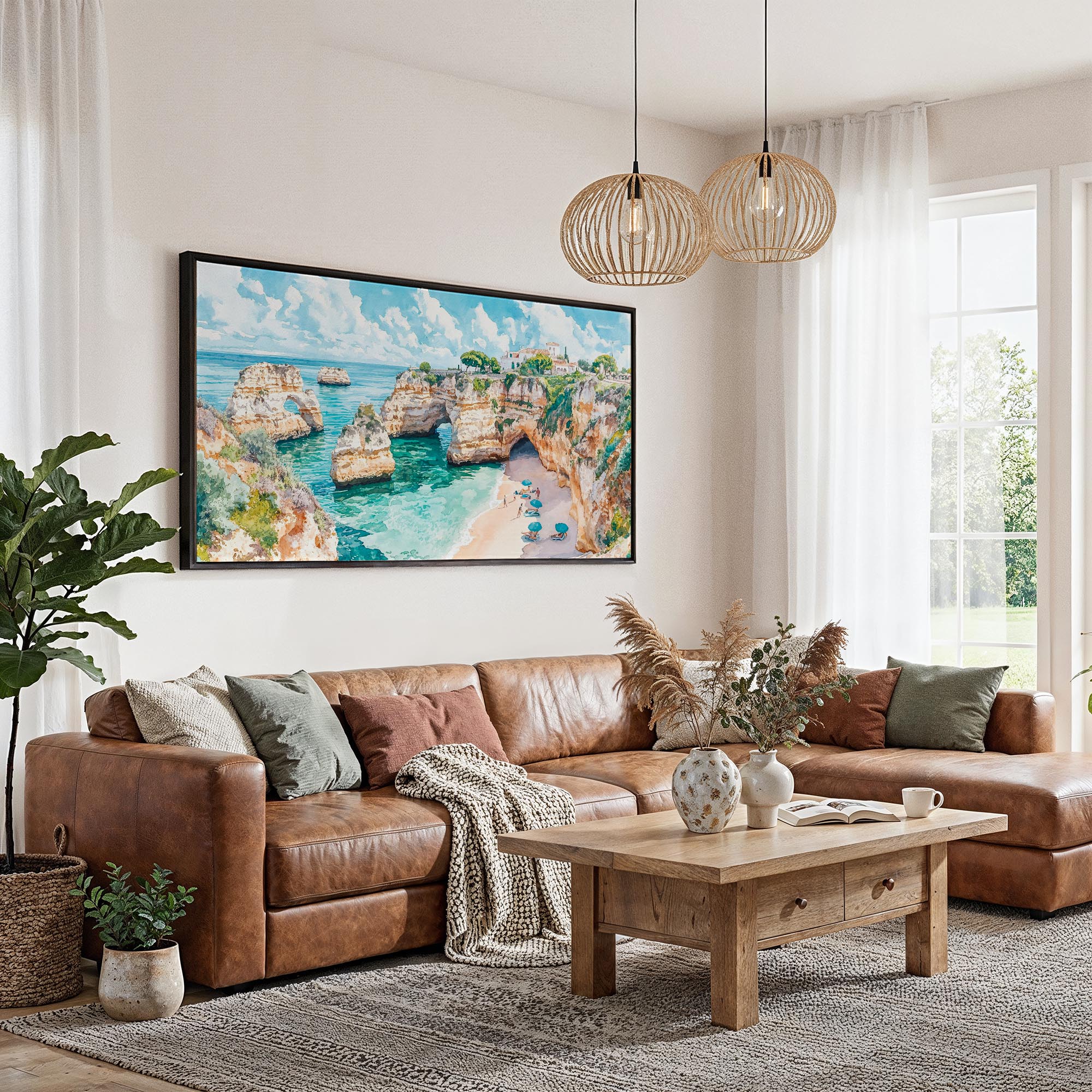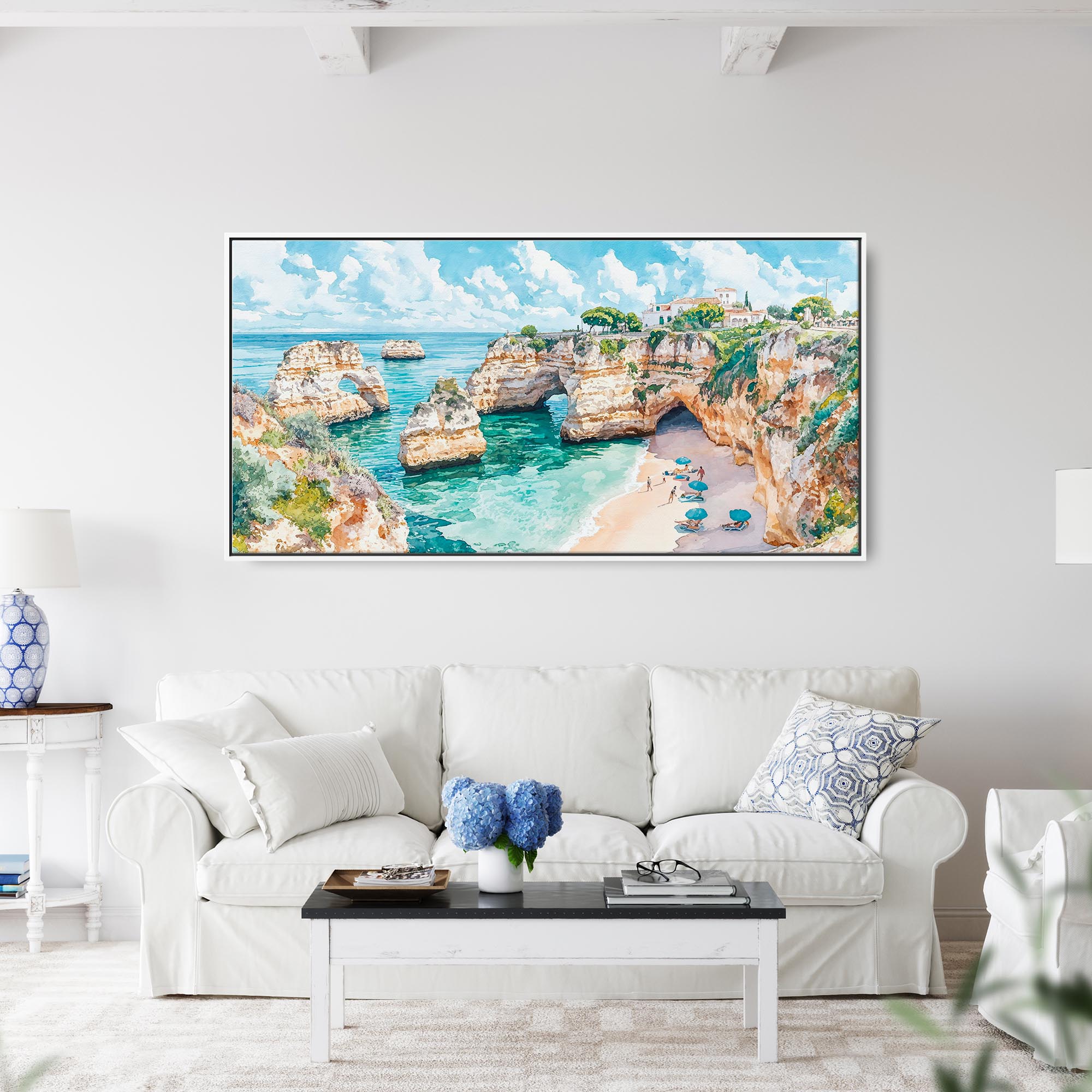 Portugal Algarve Coastline Panorama Canvas Print – Watercolor Beach Wall Art