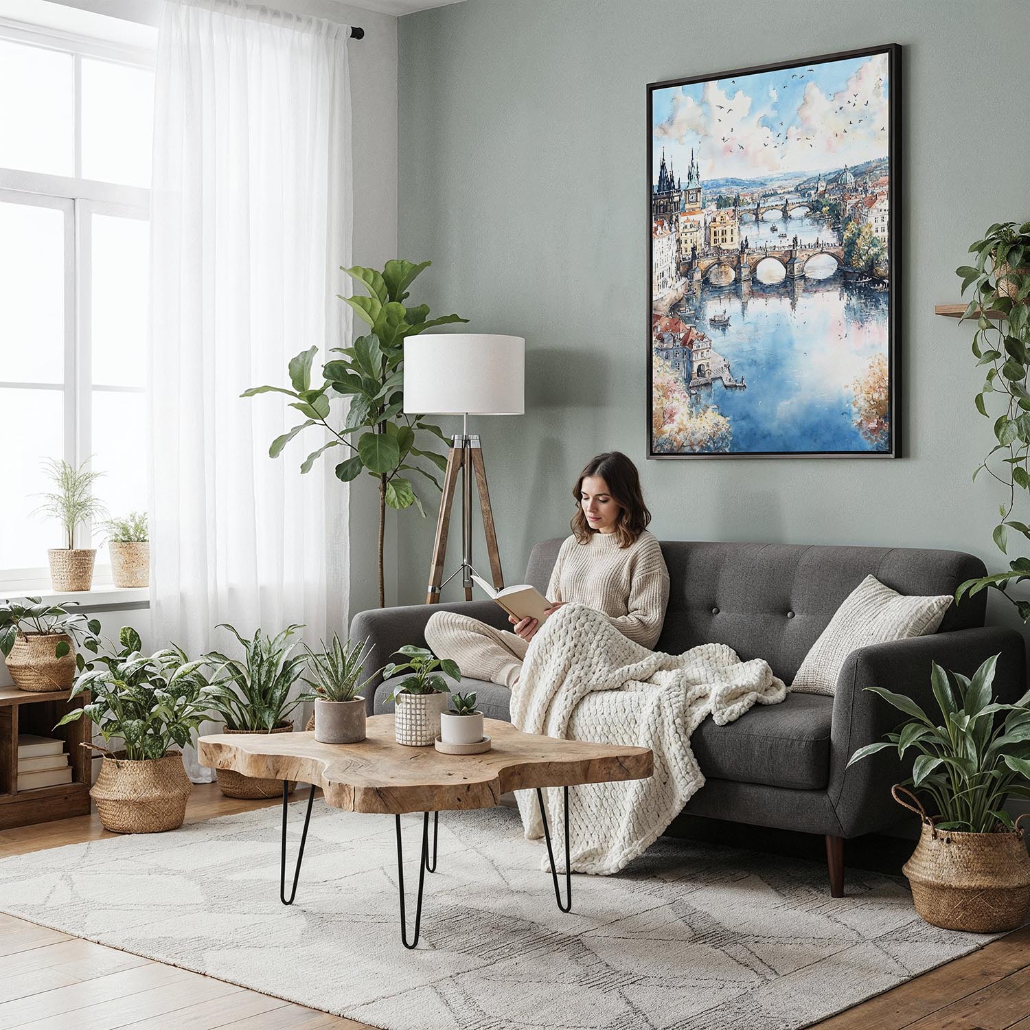 Transform your space with this Prague skyline canvas print. Featuring charming architecture and calm waters, it’s ready to hang and adds a touch of character to any room.