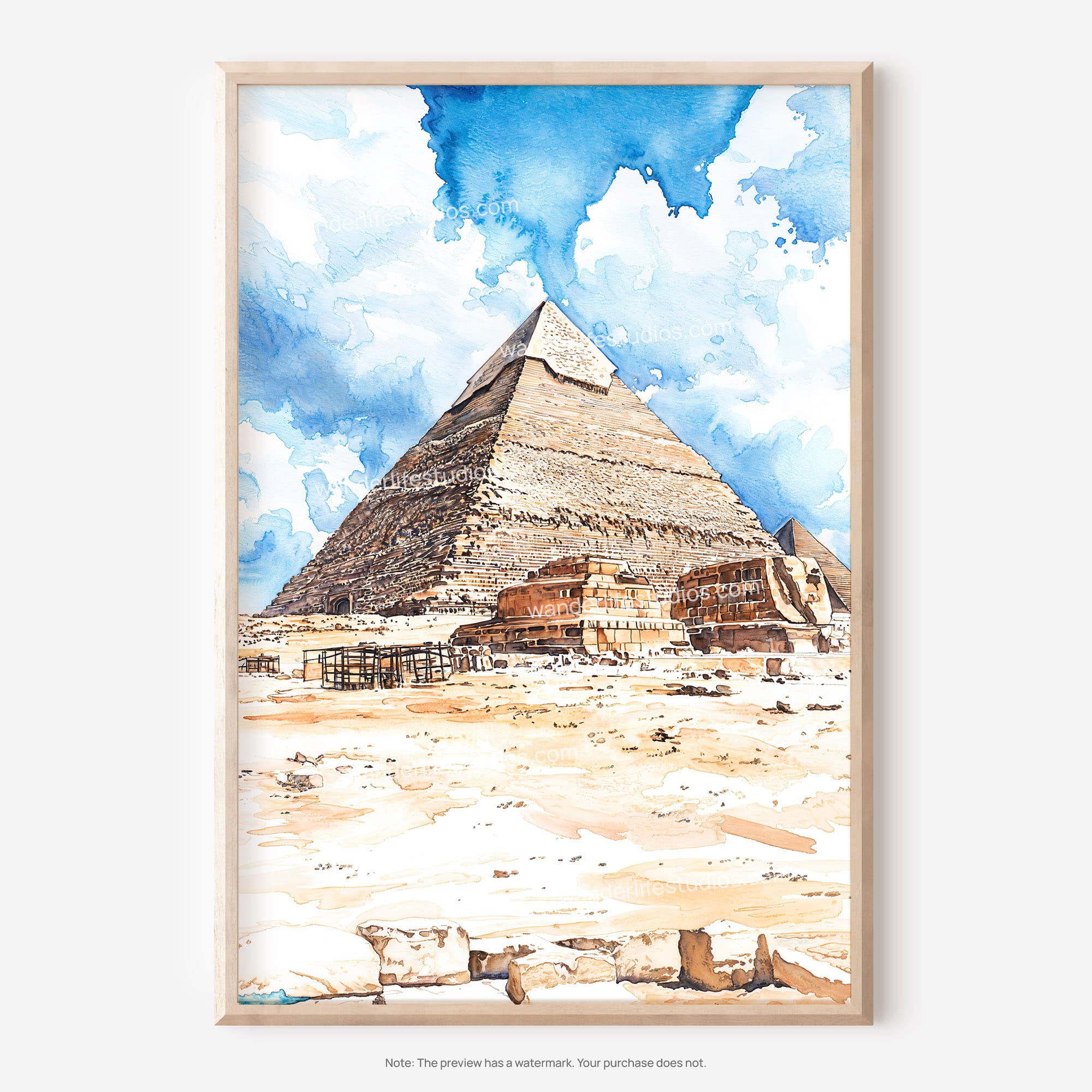 Pyramids of Giza Watercolor Art – Digital Download for Home Decor