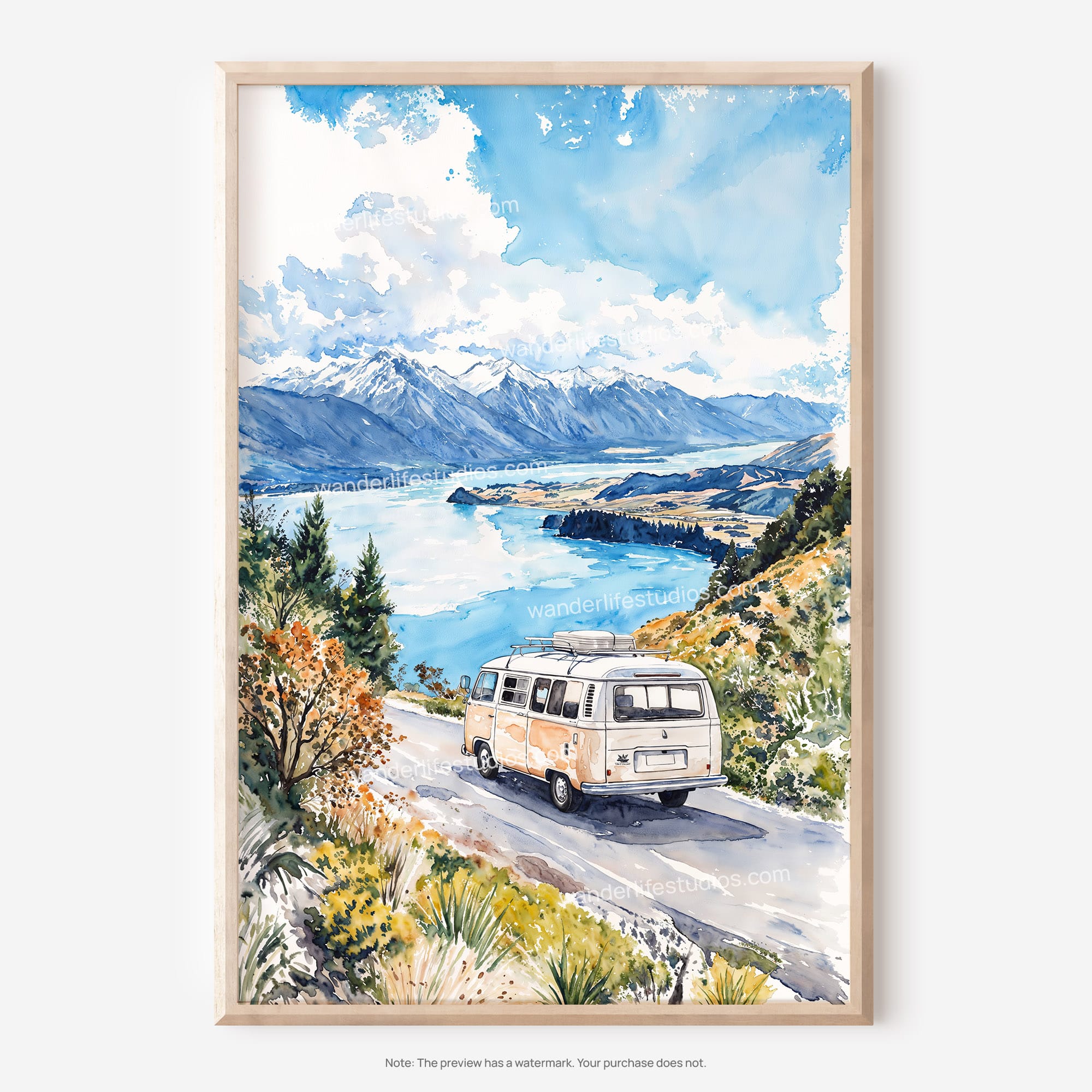 Queenstown Watercolor Art Print – Scenic Digital Download of New Zealand