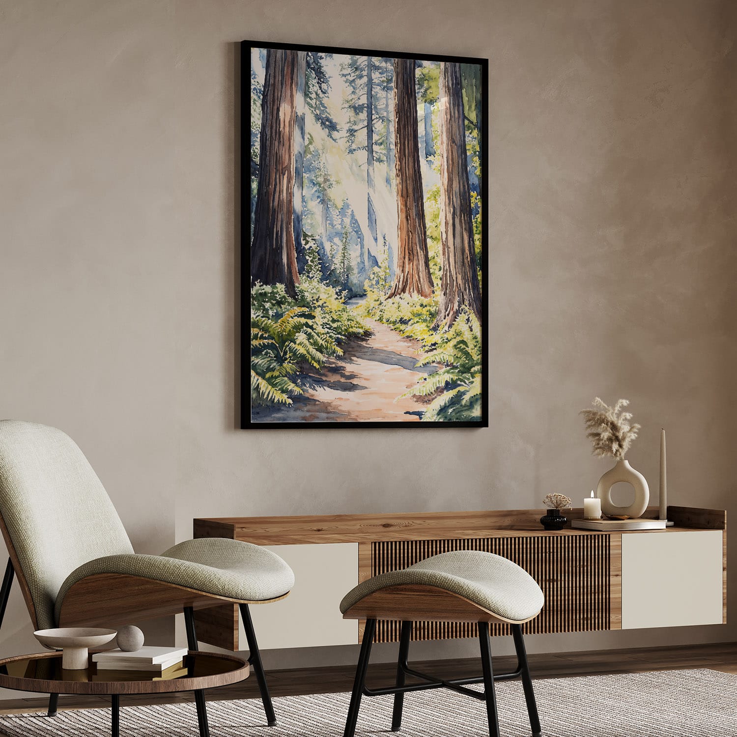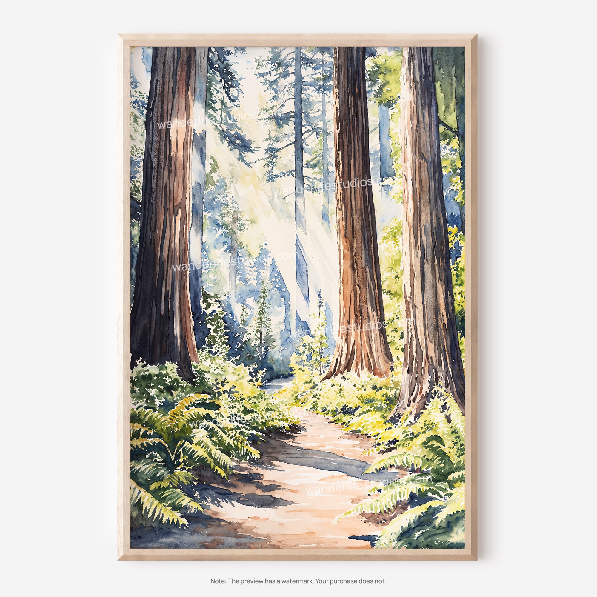 Redwood National Park Watercolor Art – Digital Download Wall Art