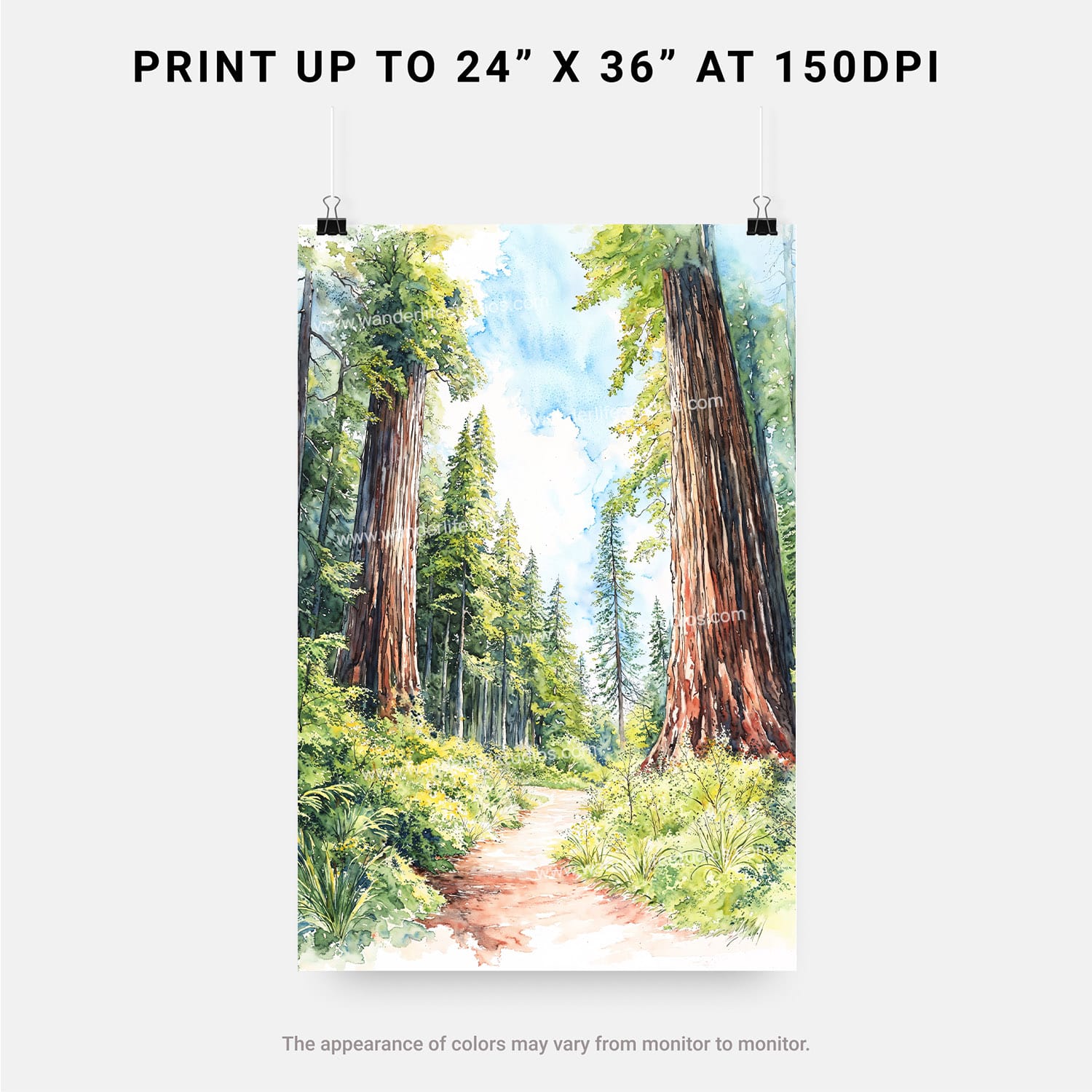 Redwood National Park Watercolor Art Print – Digital Download for Nature Lovers