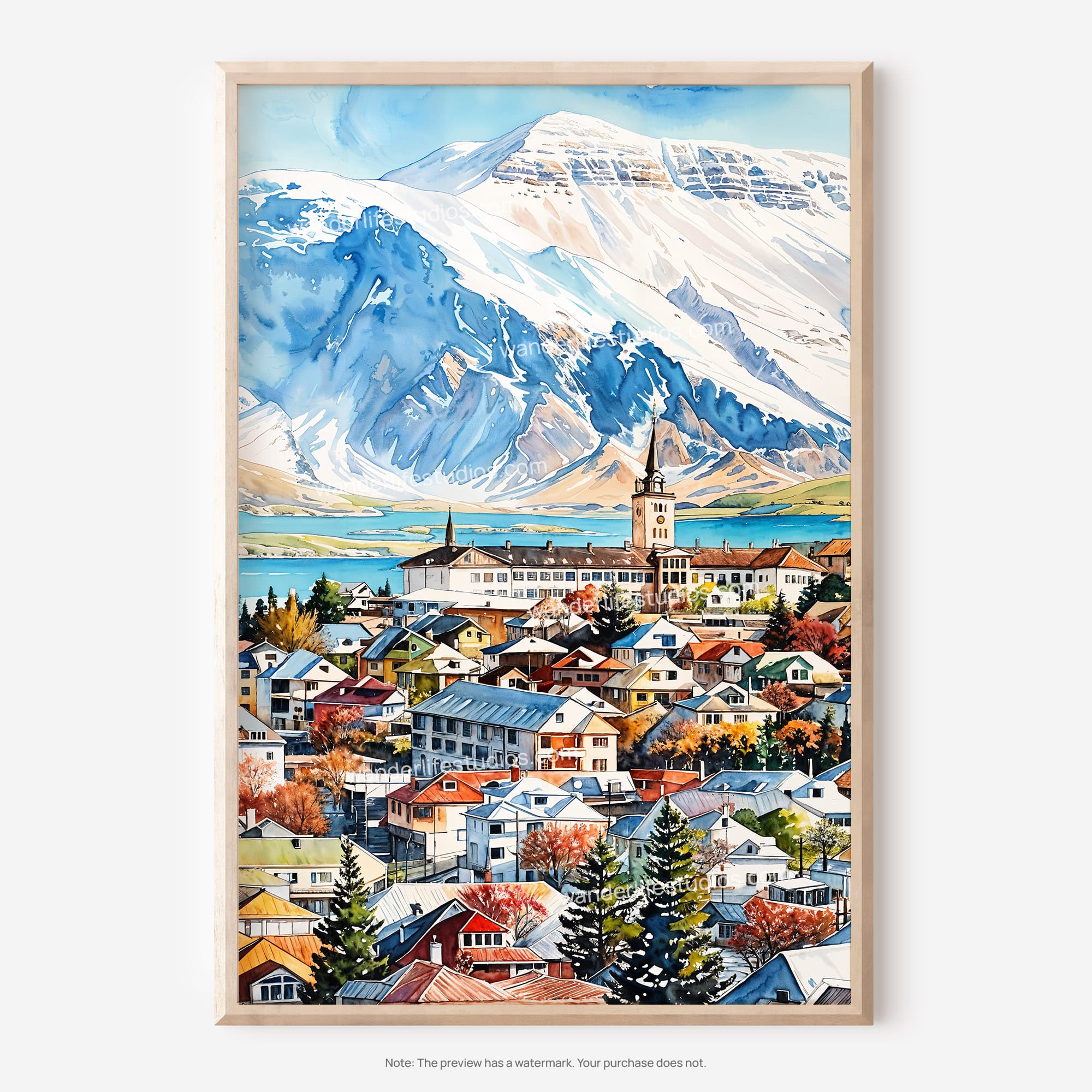Reykjavik Watercolor Digital Download Wall Art