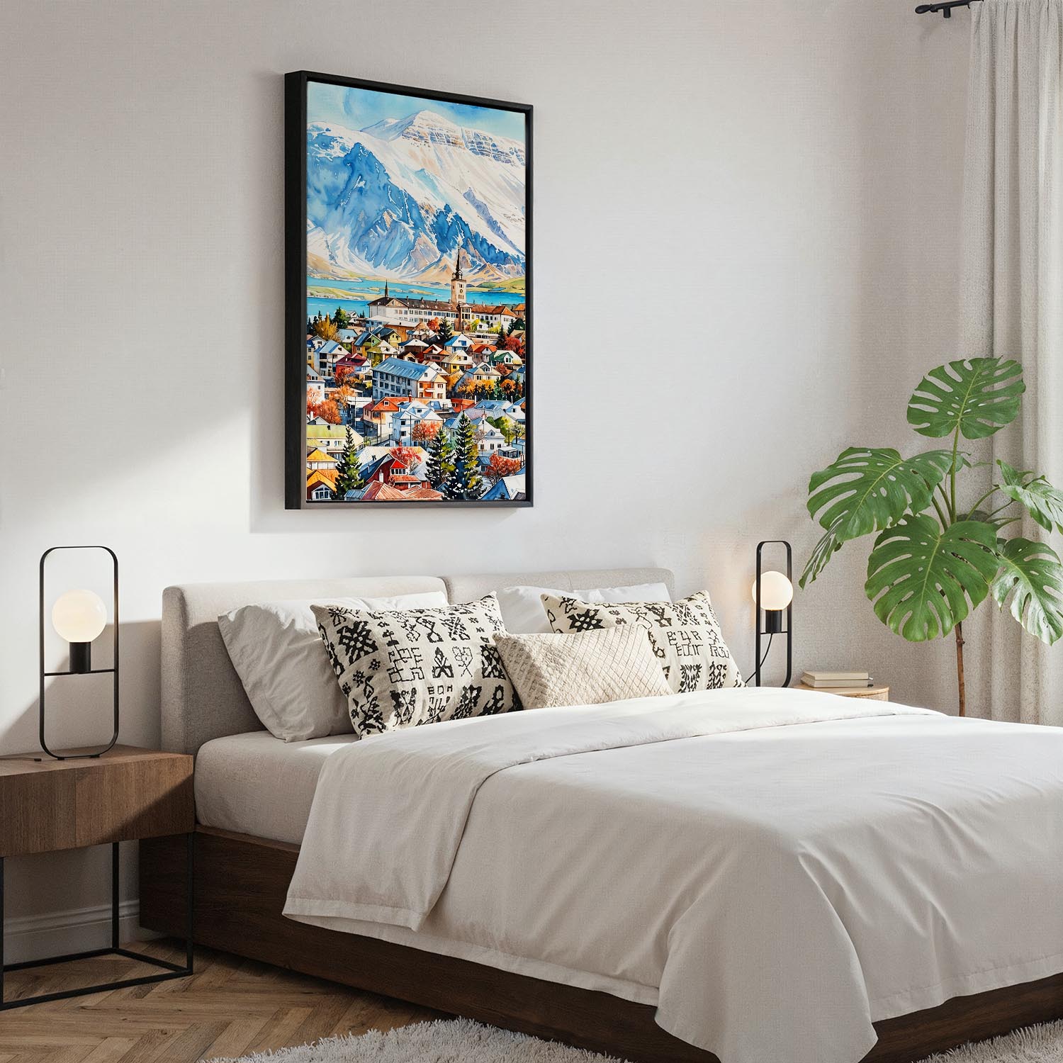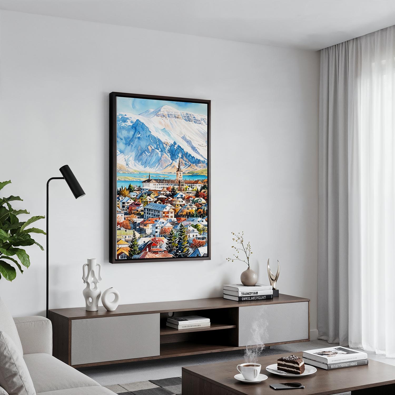 Reykjavik Watercolor Canvas Print – Icelandic Landscape Wall Art