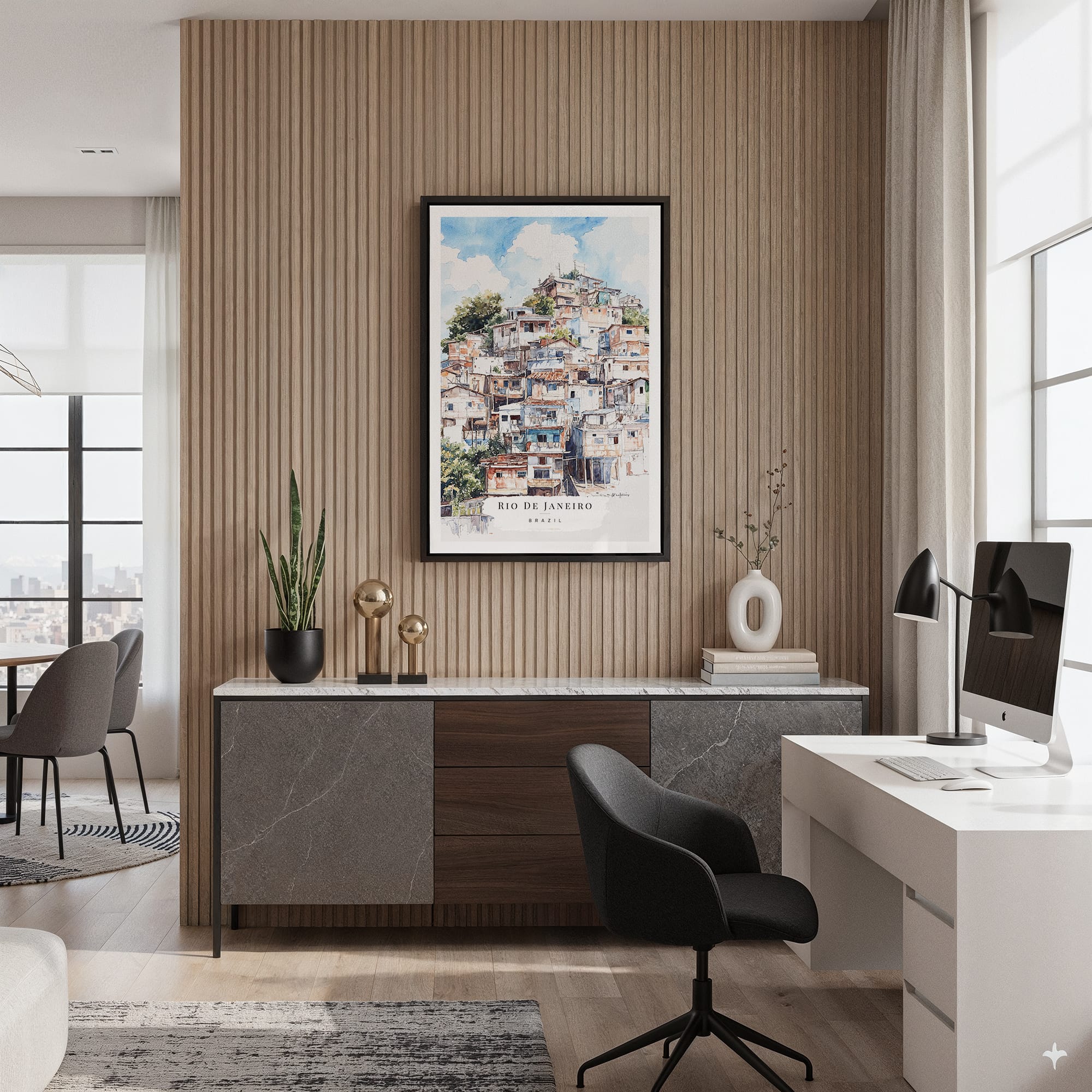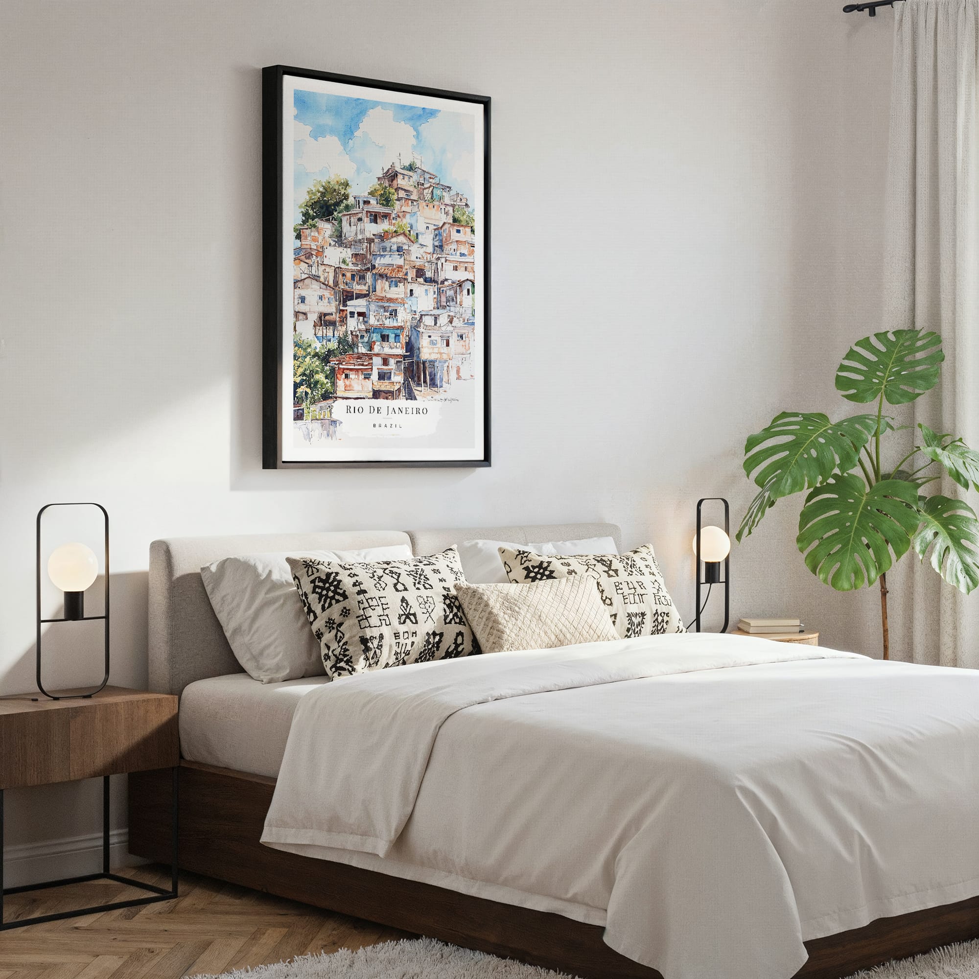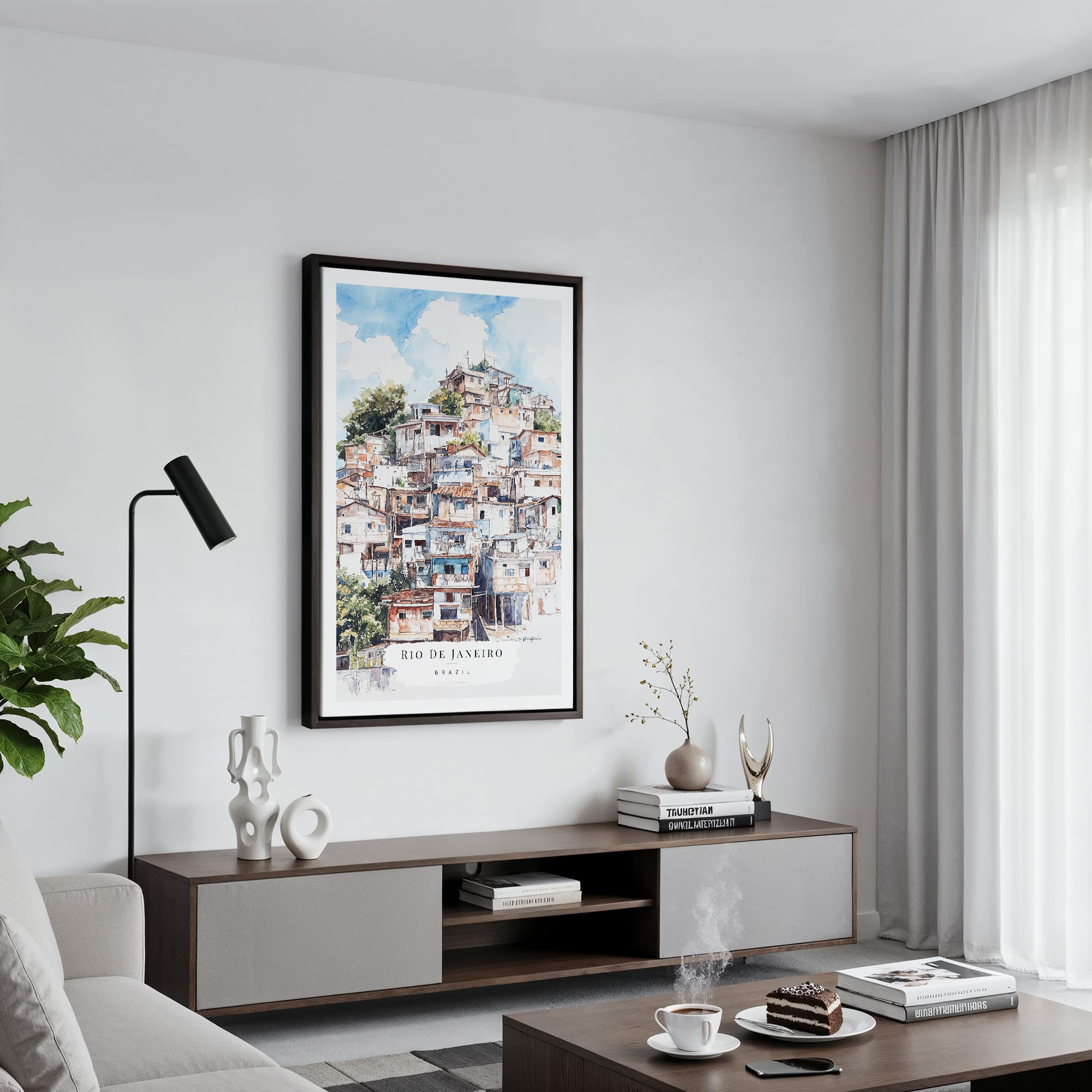 Rio de Janeiro Favelas Watercolor Canvas Art Print – Unique Urban Landscape Wall Decor