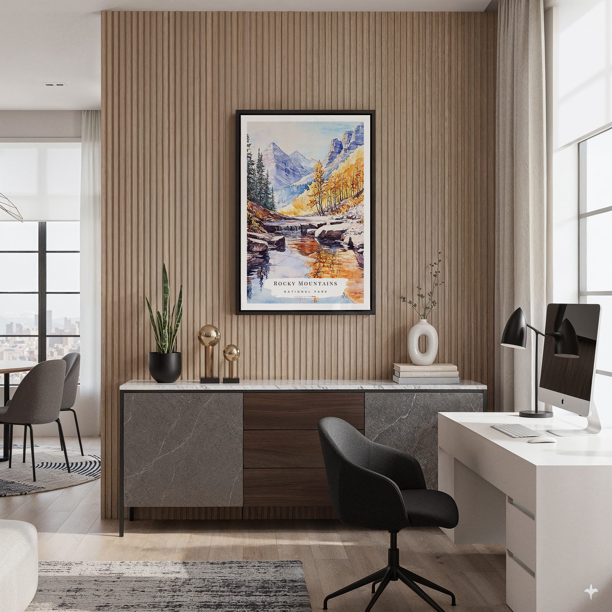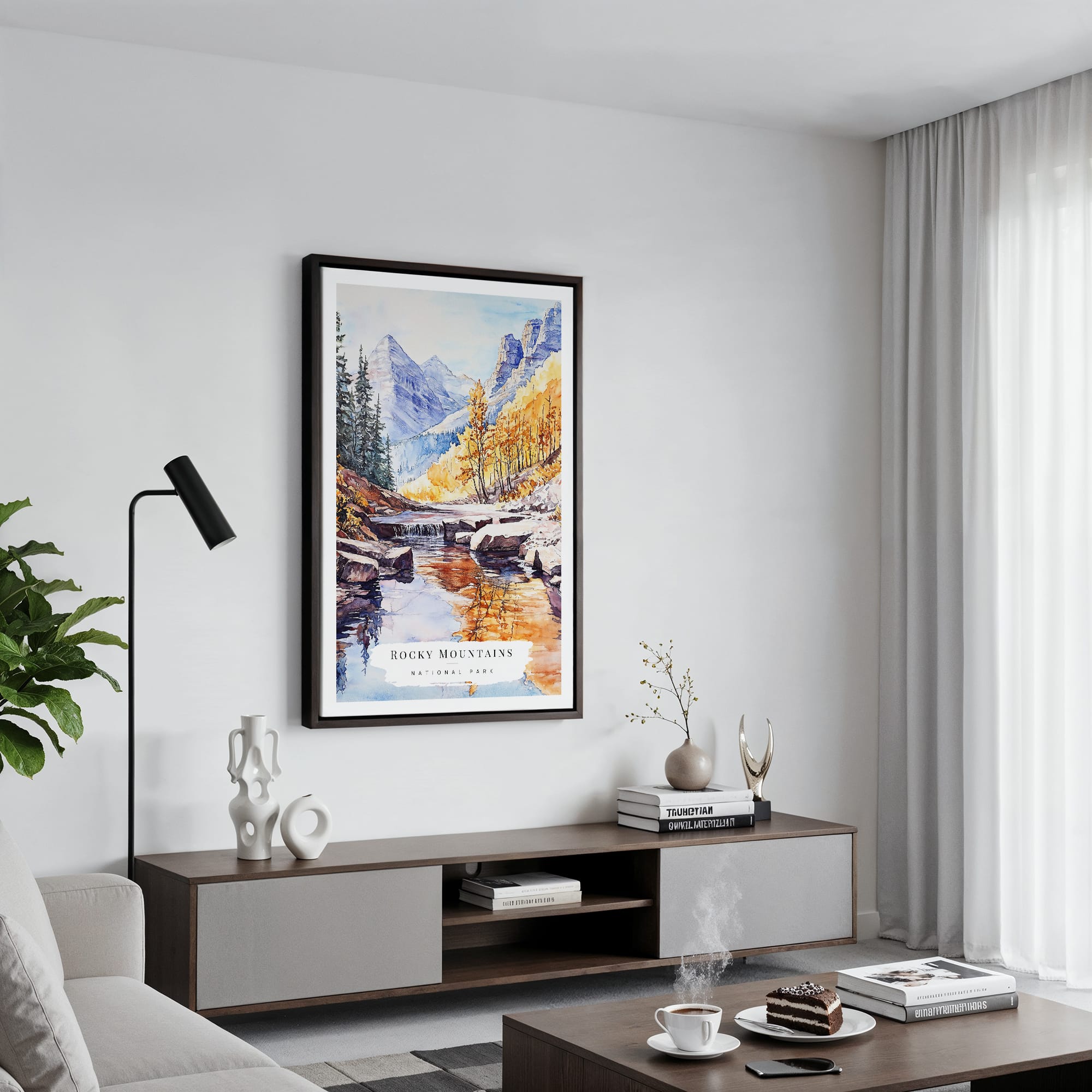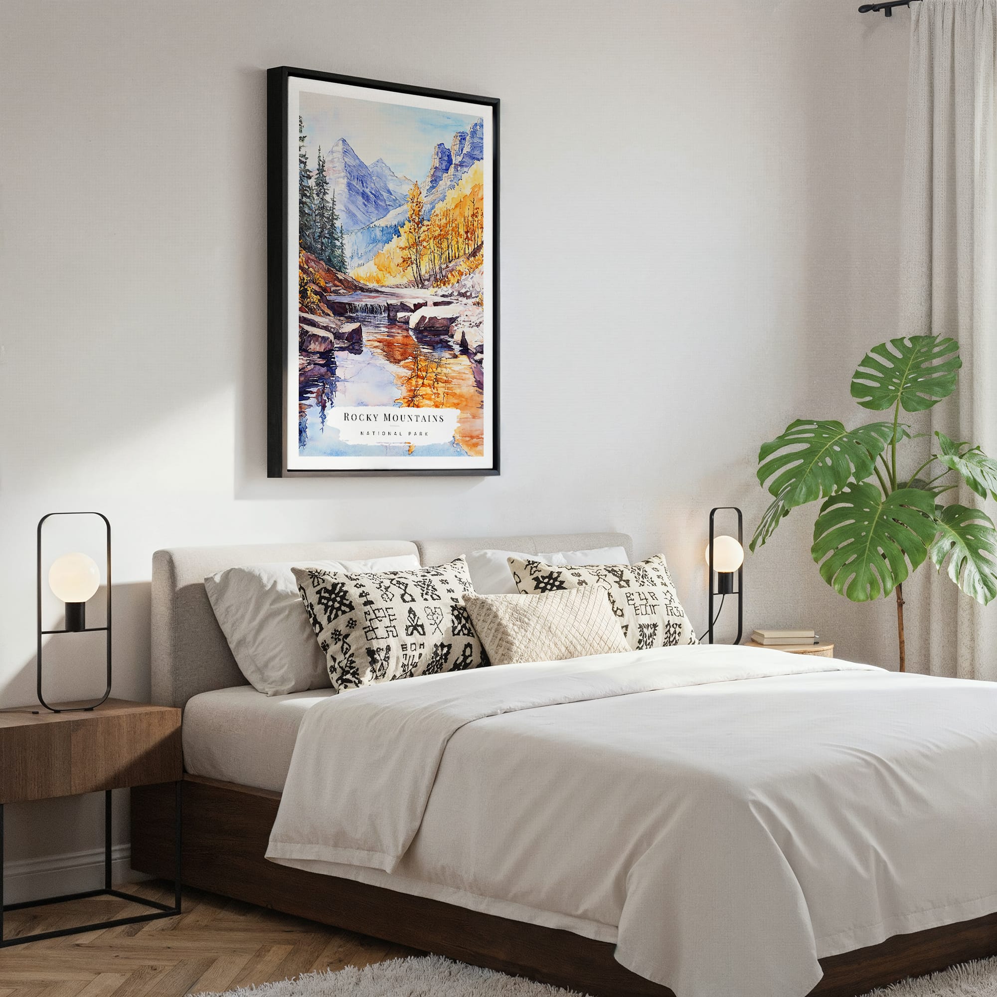 This artwork captures the peaceful essence of the Rocky Mountains, showcasing vibrant autumn colors and serene water reflections. The calm tones create a cozy atmosphere, perfect for your living room, bedroom, or office. Crafted on durable canvas with fade-resistant inks, it comes ready to hang and fits beautifully in any space. Enjoy this piece for yourself or gift it to someone who appreciates nature’s beauty.