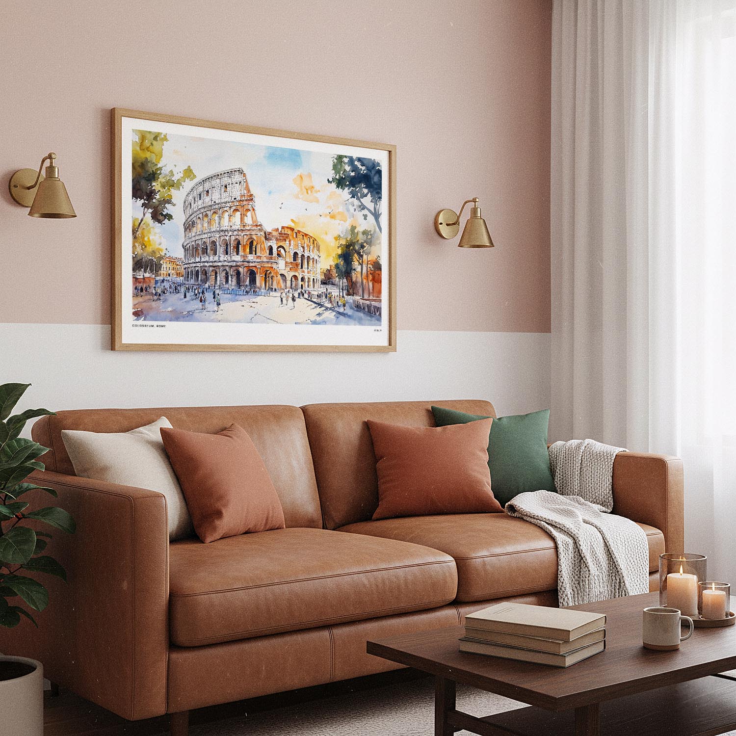 Capture the essence of Rome with this vibrant watercolor art print featuring the Colosseum. Perfect for adding a touch of history to your living room, office, or gallery wall.
