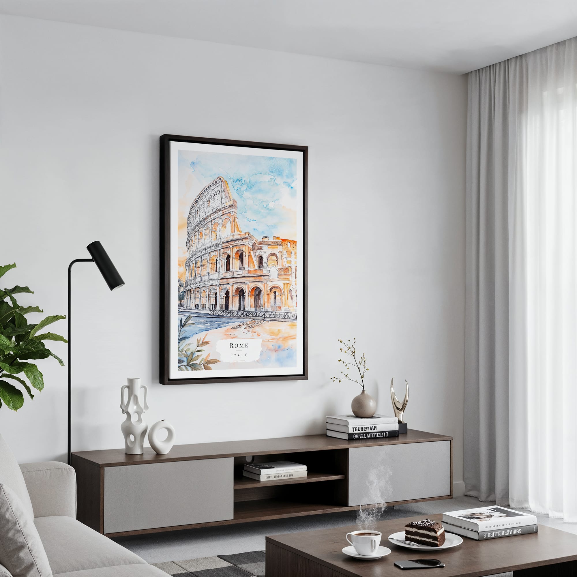 Rome Colosseum Watercolor Canvas Print – Elegant Wall Art for Home Decor