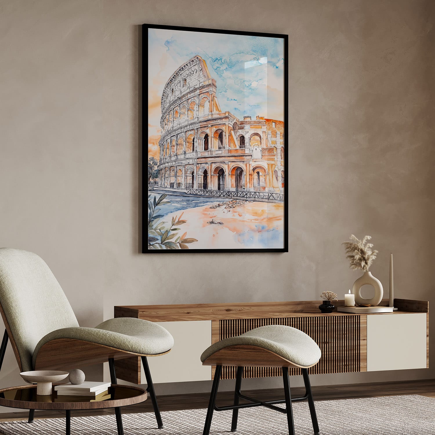 Rome Colosseum Watercolor Digital Download – Vibrant Architectural Wall Art
