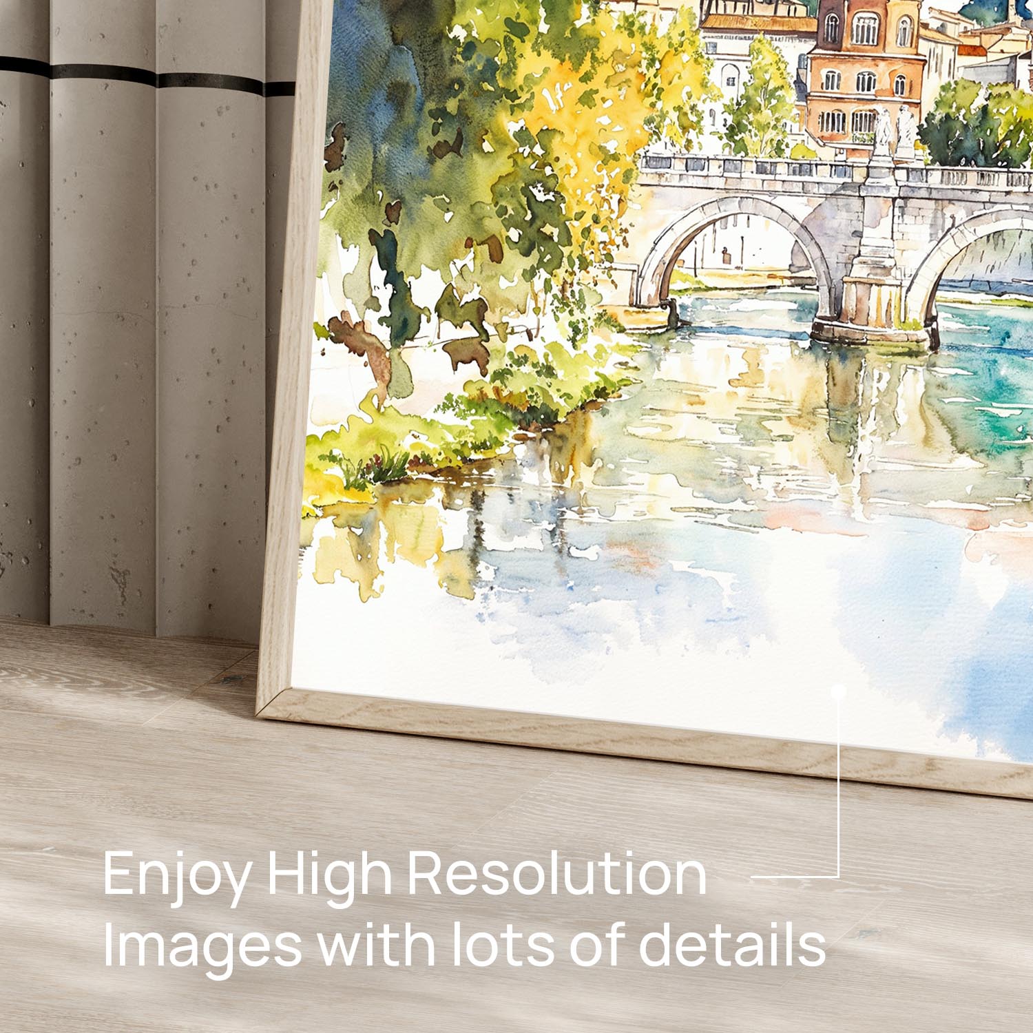 Experience the charm of Vatican City through this beautiful watercolor artwork. Capturing the grandeur of St. Peter’s Basilica and the serene setting along the river, this piece invites a sense of wonder and tranquility into your space.