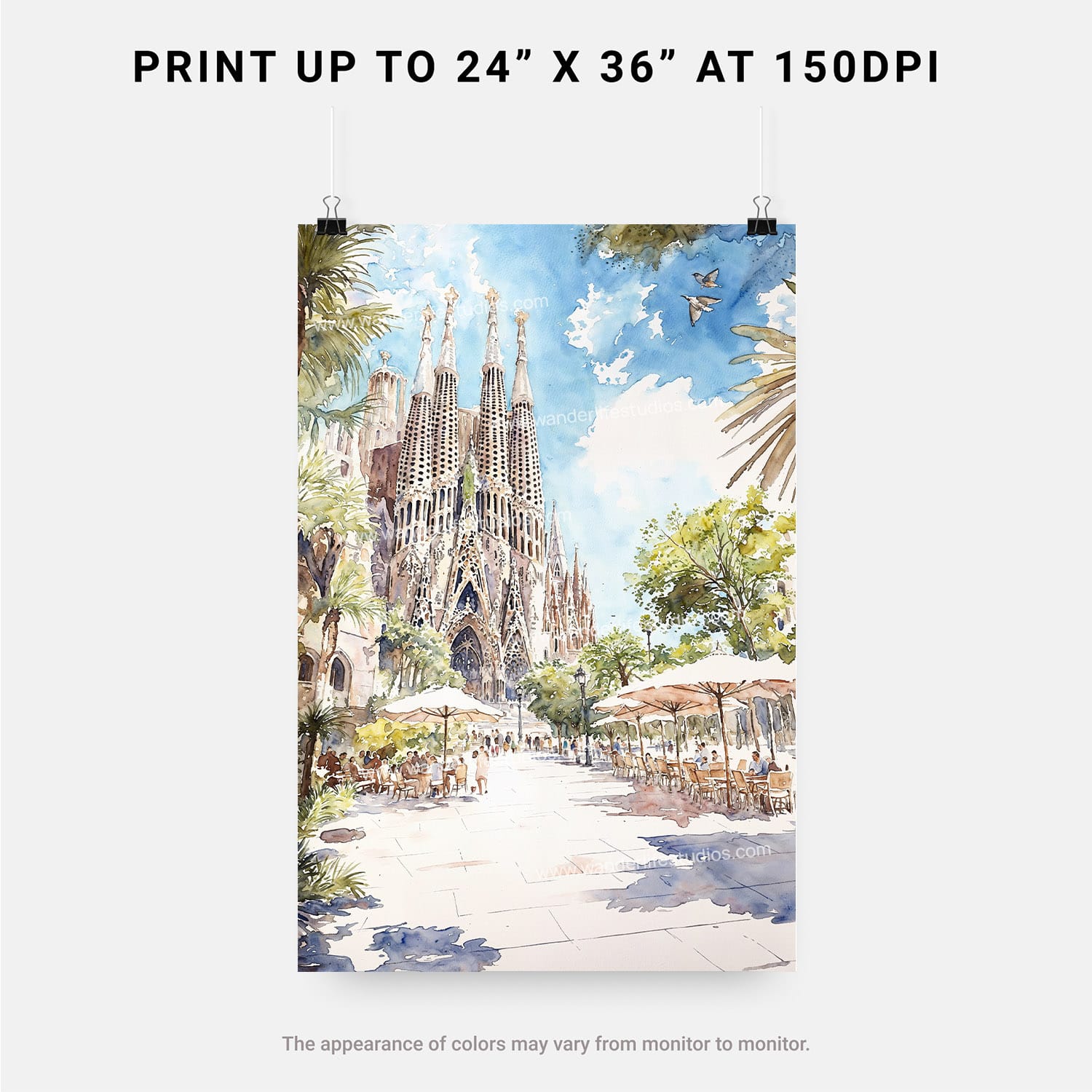 Sagrada Familia Watercolor Art – Digital Download Wall Decor