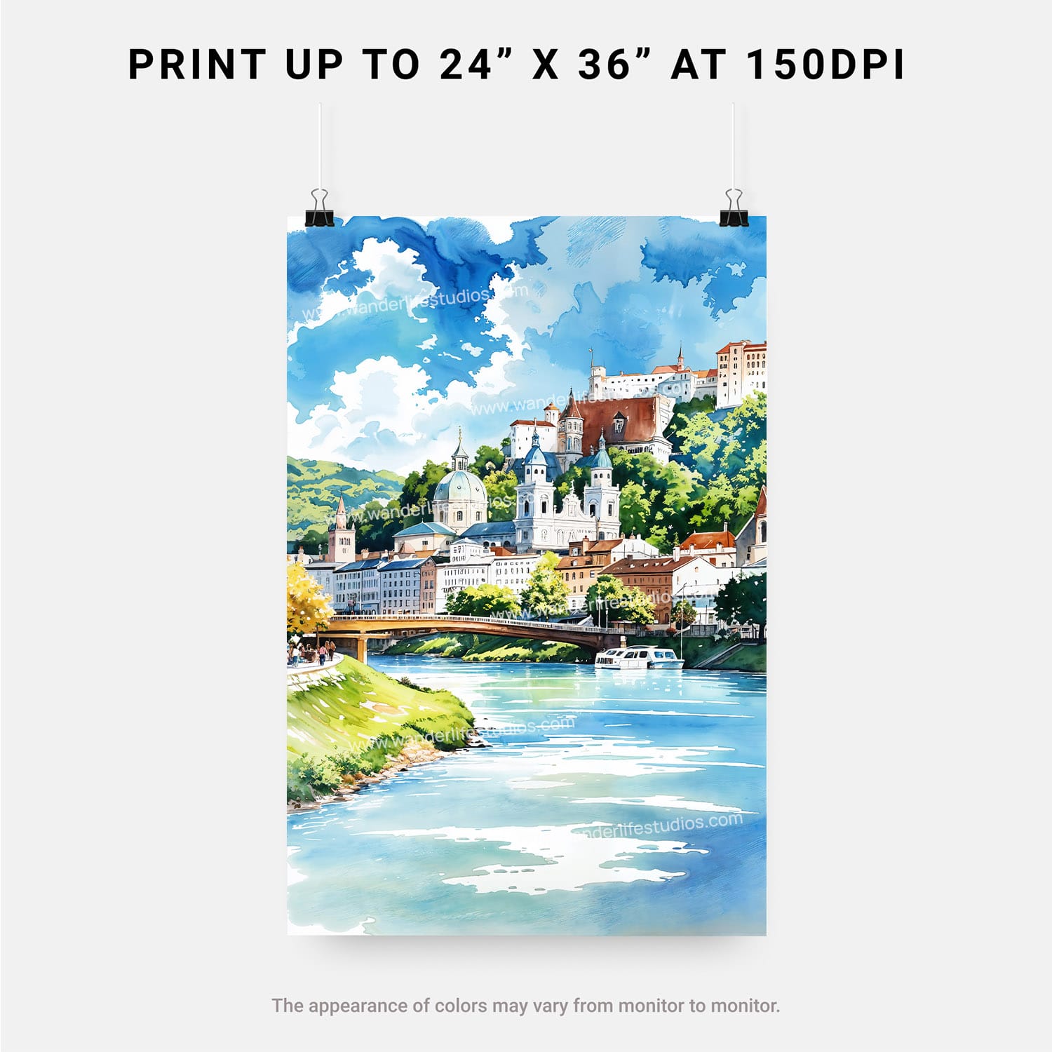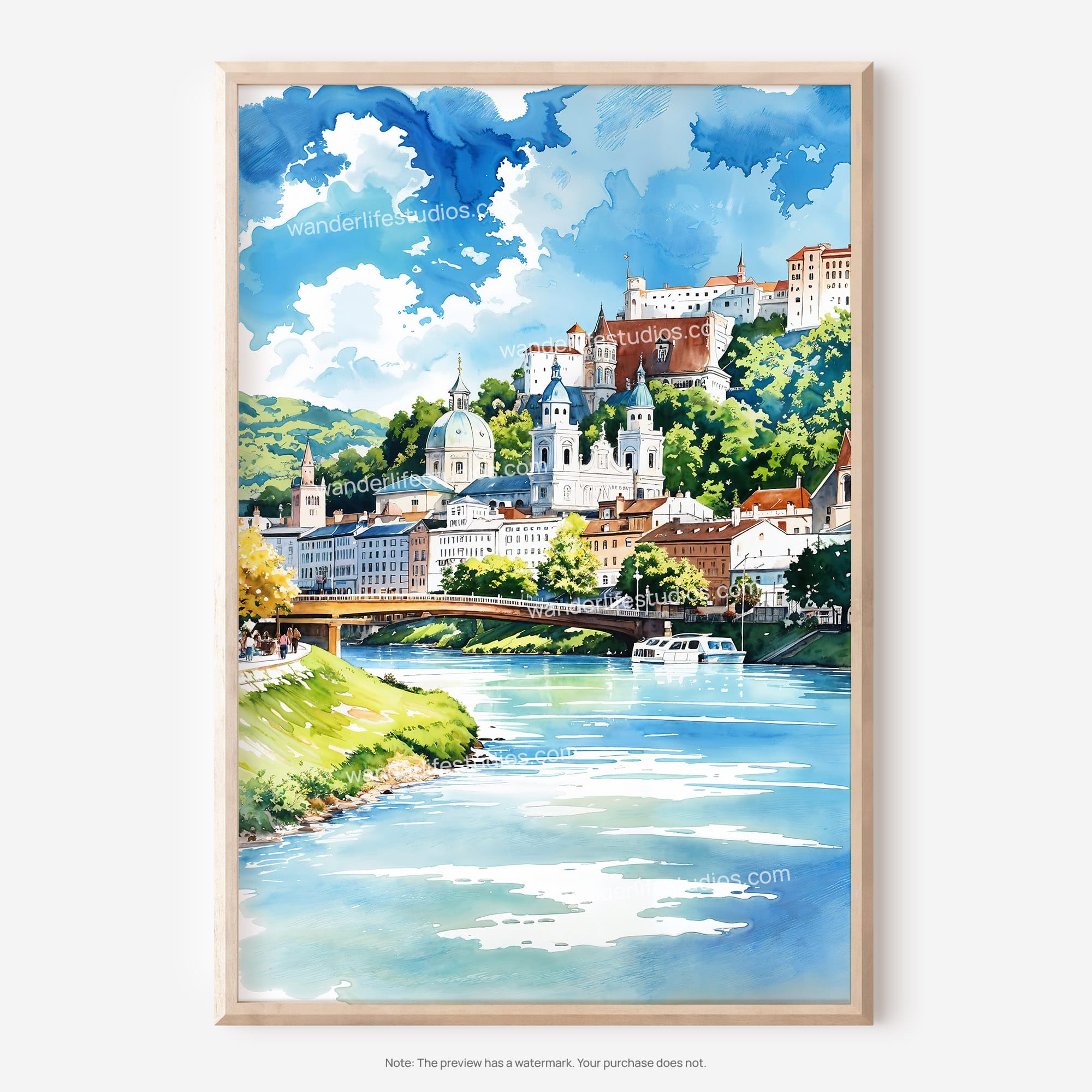 Salzburg Austria Watercolor Digital Download Wall Art