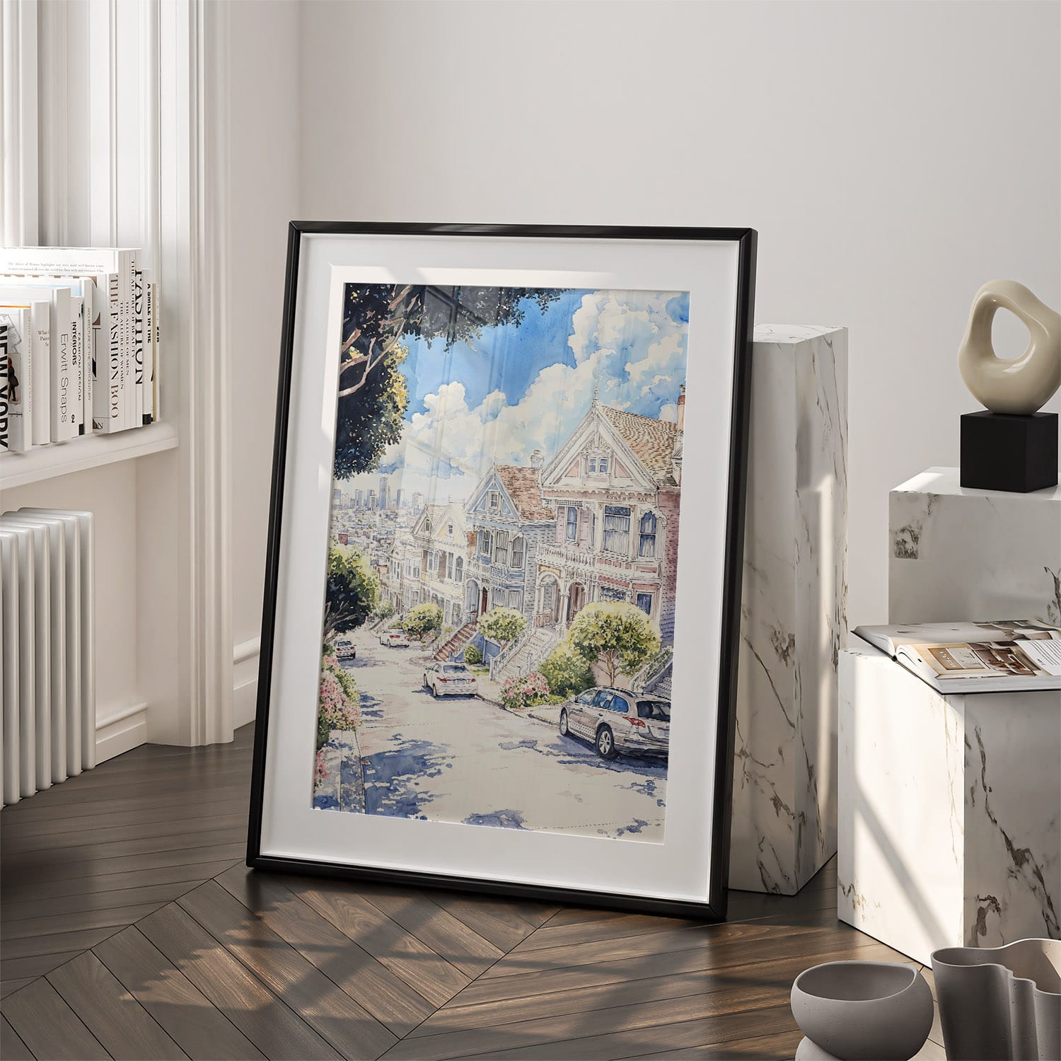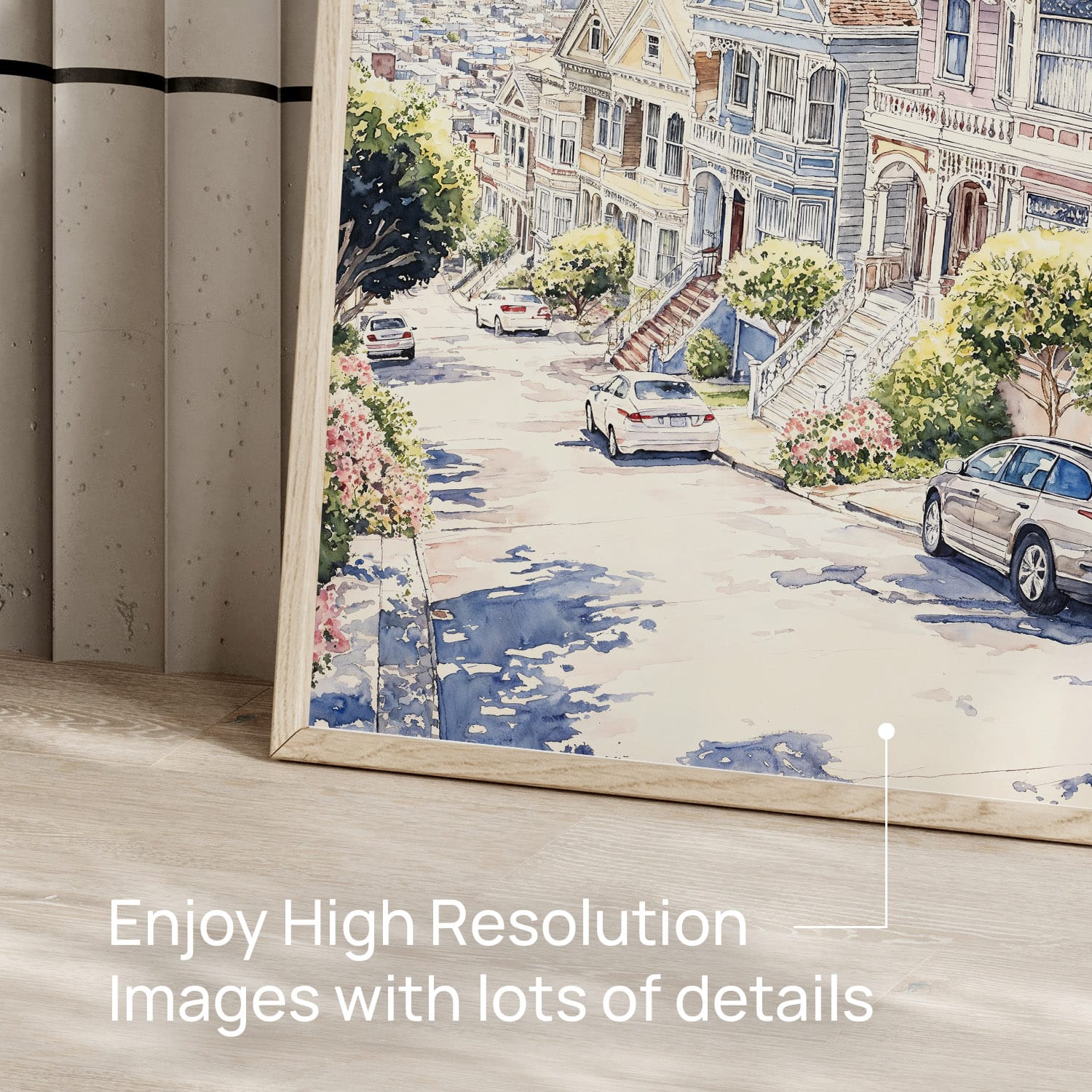 Capture the charm of San Francisco with this vibrant watercolor digital download of the iconic Painted Ladies. Instantly access and print at home or a local shop to bring colorful life to your space.