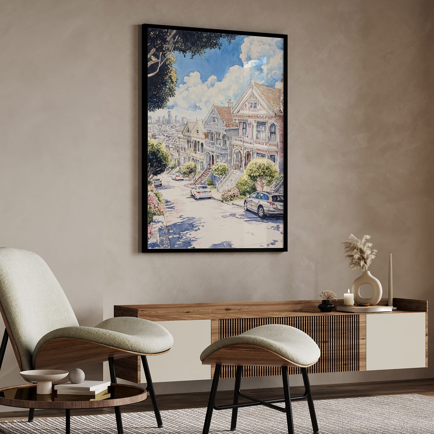 This artwork beautifully showcases the iconic Painted Ladies, featuring soft colors and intricate details that brighten any room. It adds a warm touch, making it suitable for living areas, bedrooms, or home offices. Delivered as a high-resolution JPG file, it offers various sizes and can be printed easily at home or through a print shop. Enjoy the convenience of instant access, perfect for adding character to your walls or as a thoughtful statement piece.