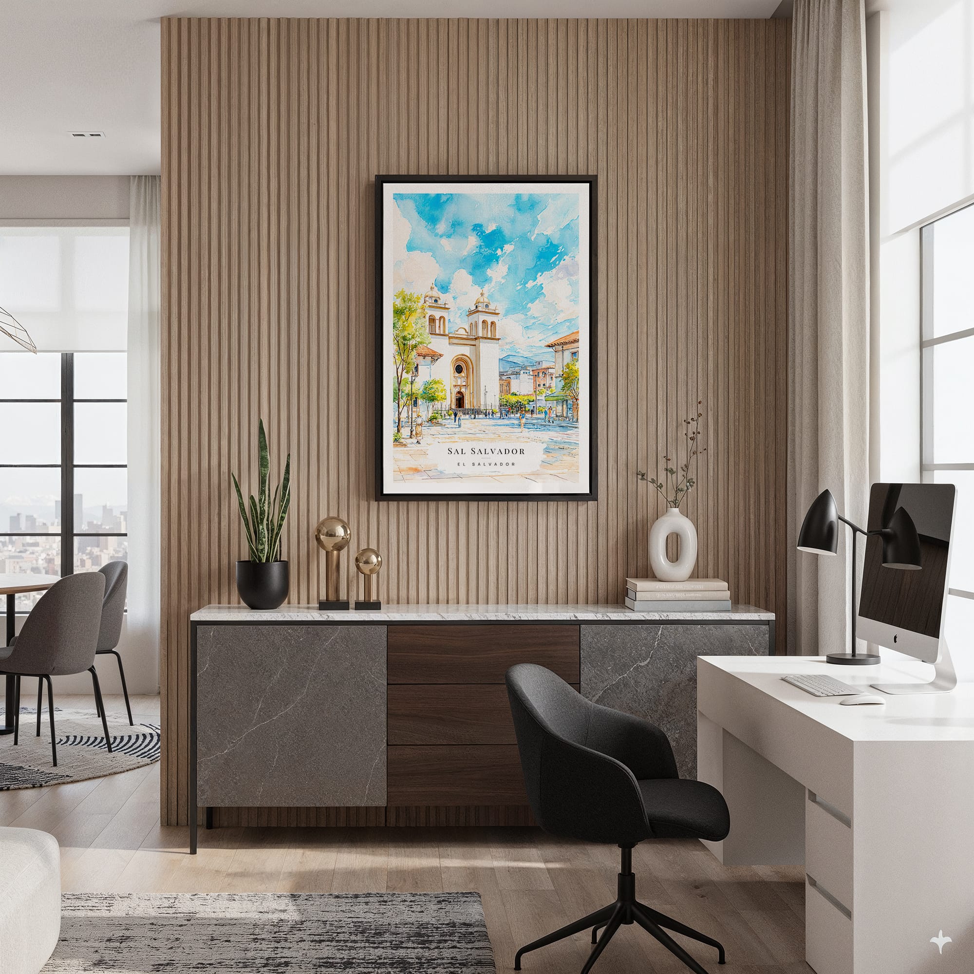 Transform your space with this San Salvador canvas art print, featuring soft blues and vibrant greens that capture the essence of urban life. It’s a great addition to any room and makes a thoughtful gift for art lovers.