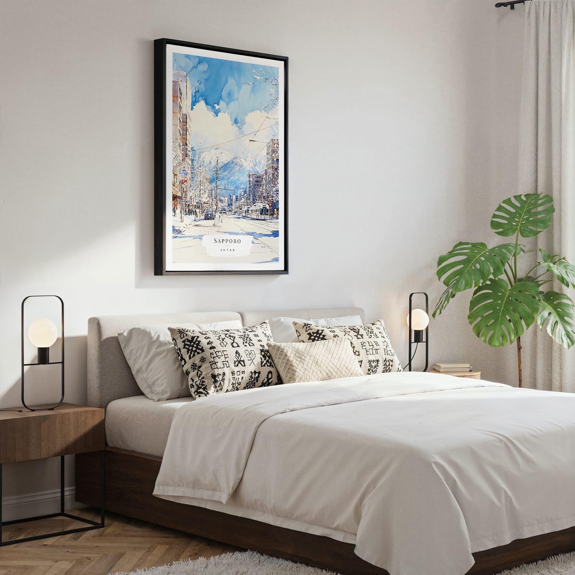 Sapporo, Japan Watercolor Canvas Art Print – Charming Winter Cityscape Wall Decor