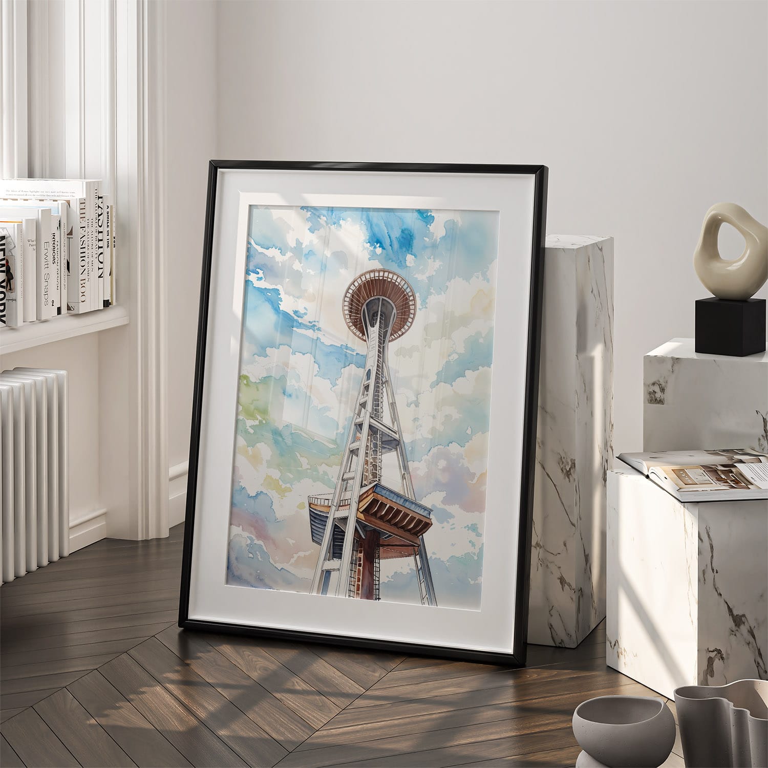 Seattle Space Needle Watercolor Art – Digital Download Wall Art for Home Decor
