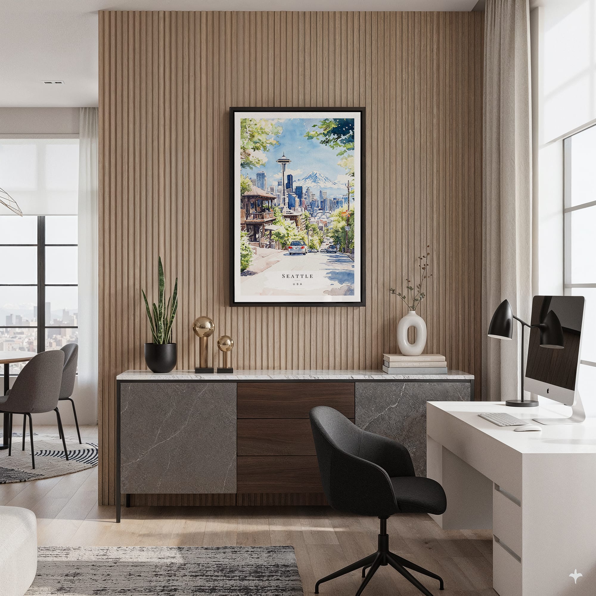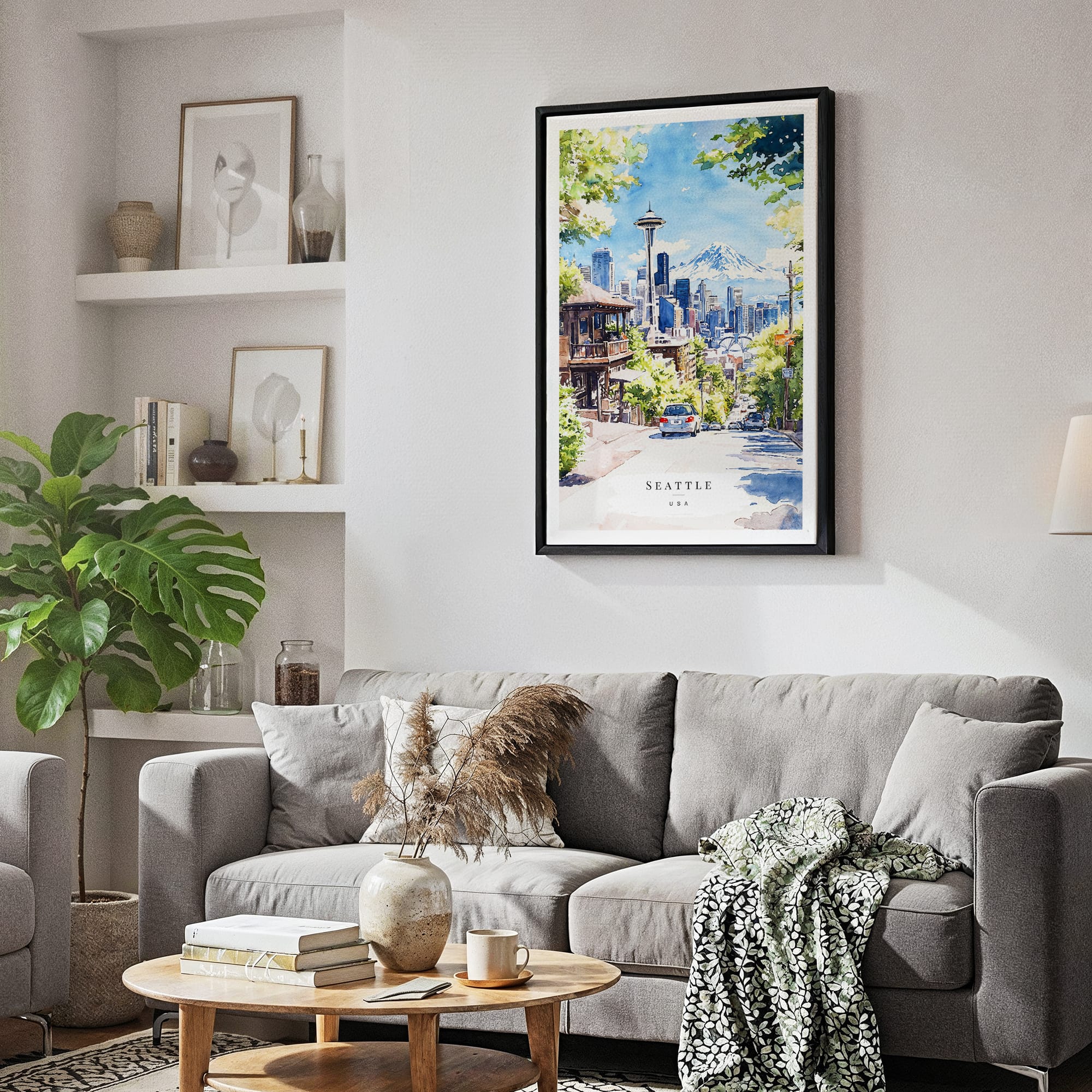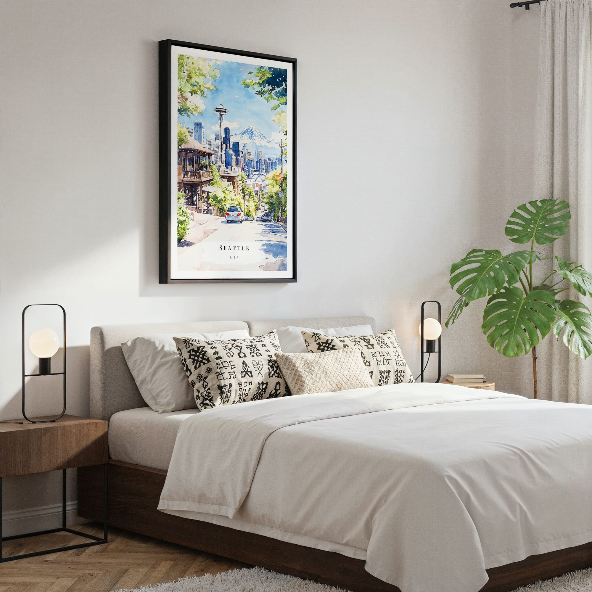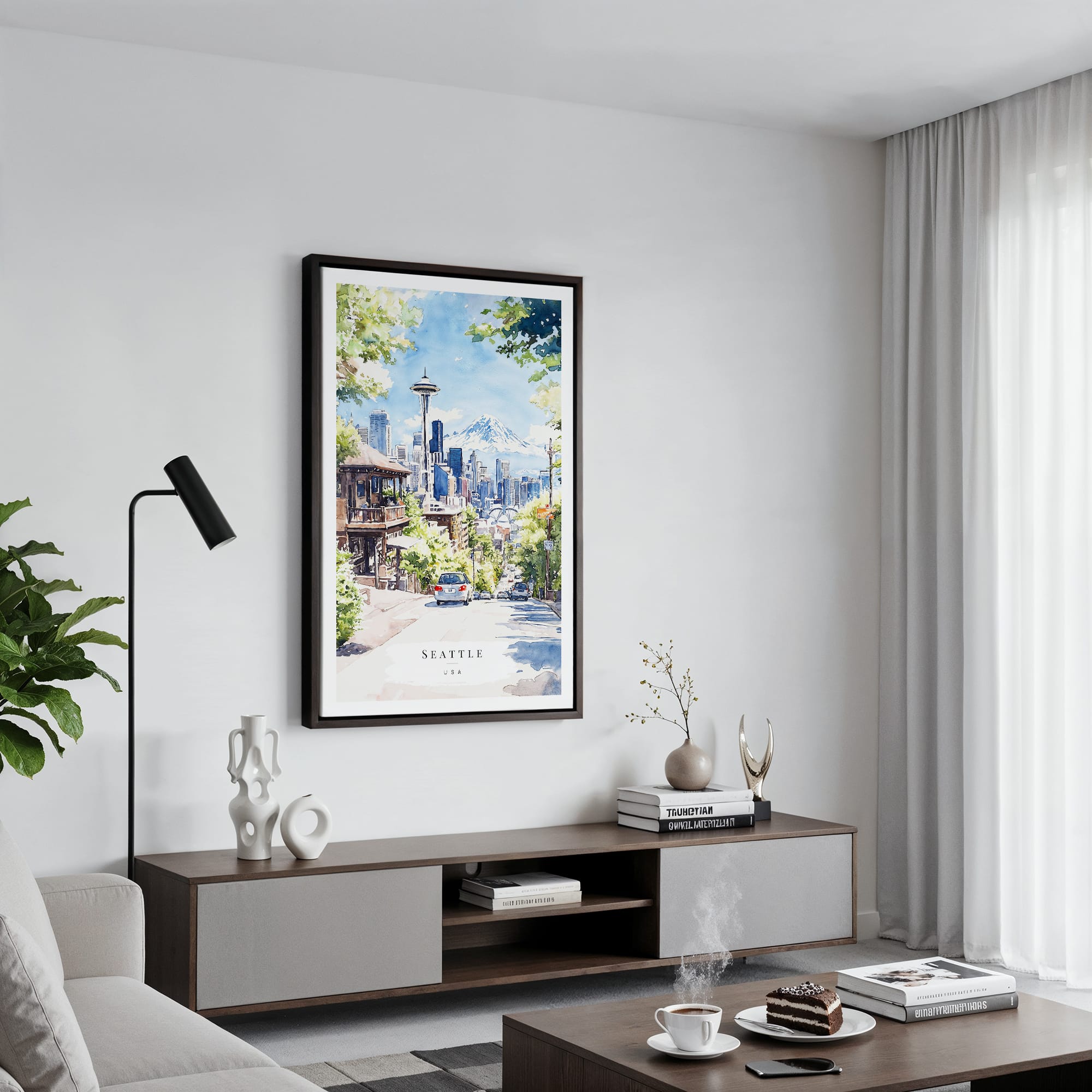 Seattle Space Needle Watercolor Canvas Art Print – Urban Landscape Decor