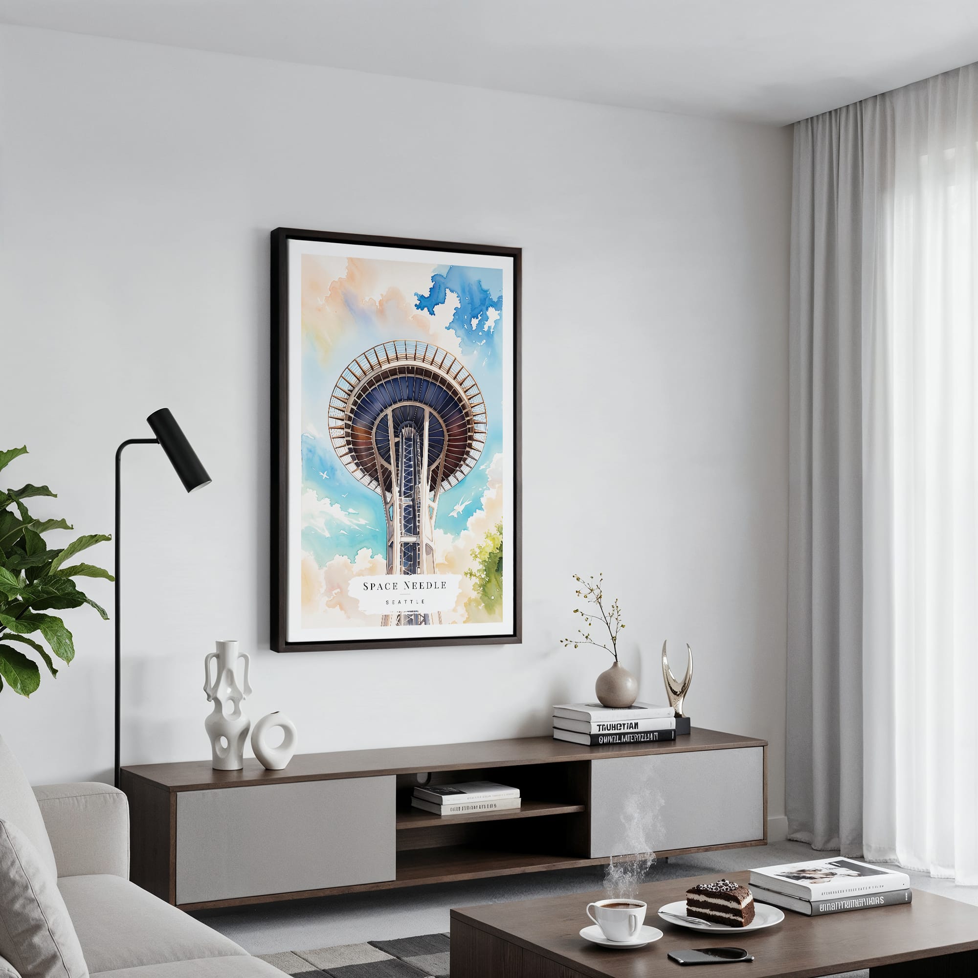 Seattle Space Needle Watercolor Canvas Print – Vibrant Closeup Wall Art