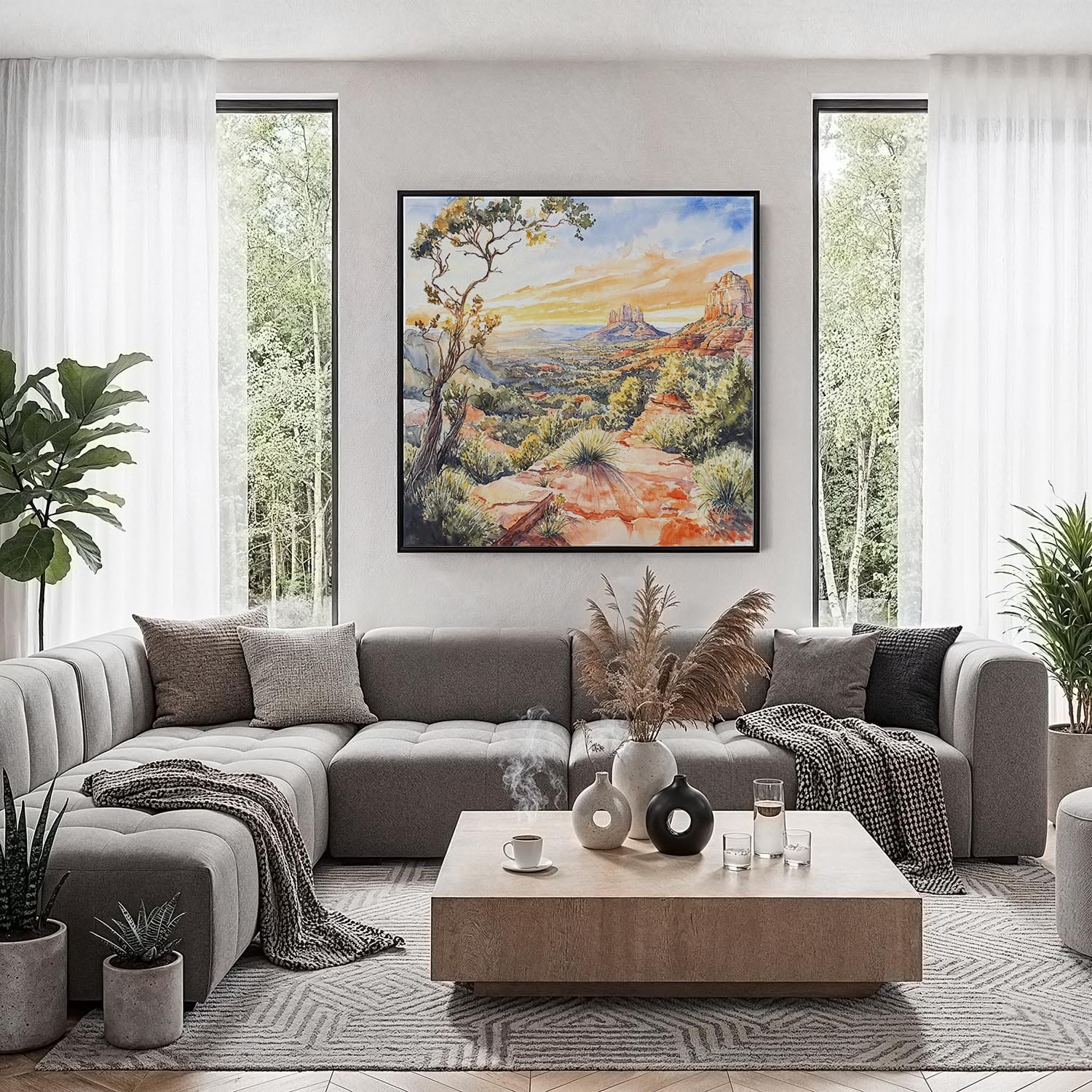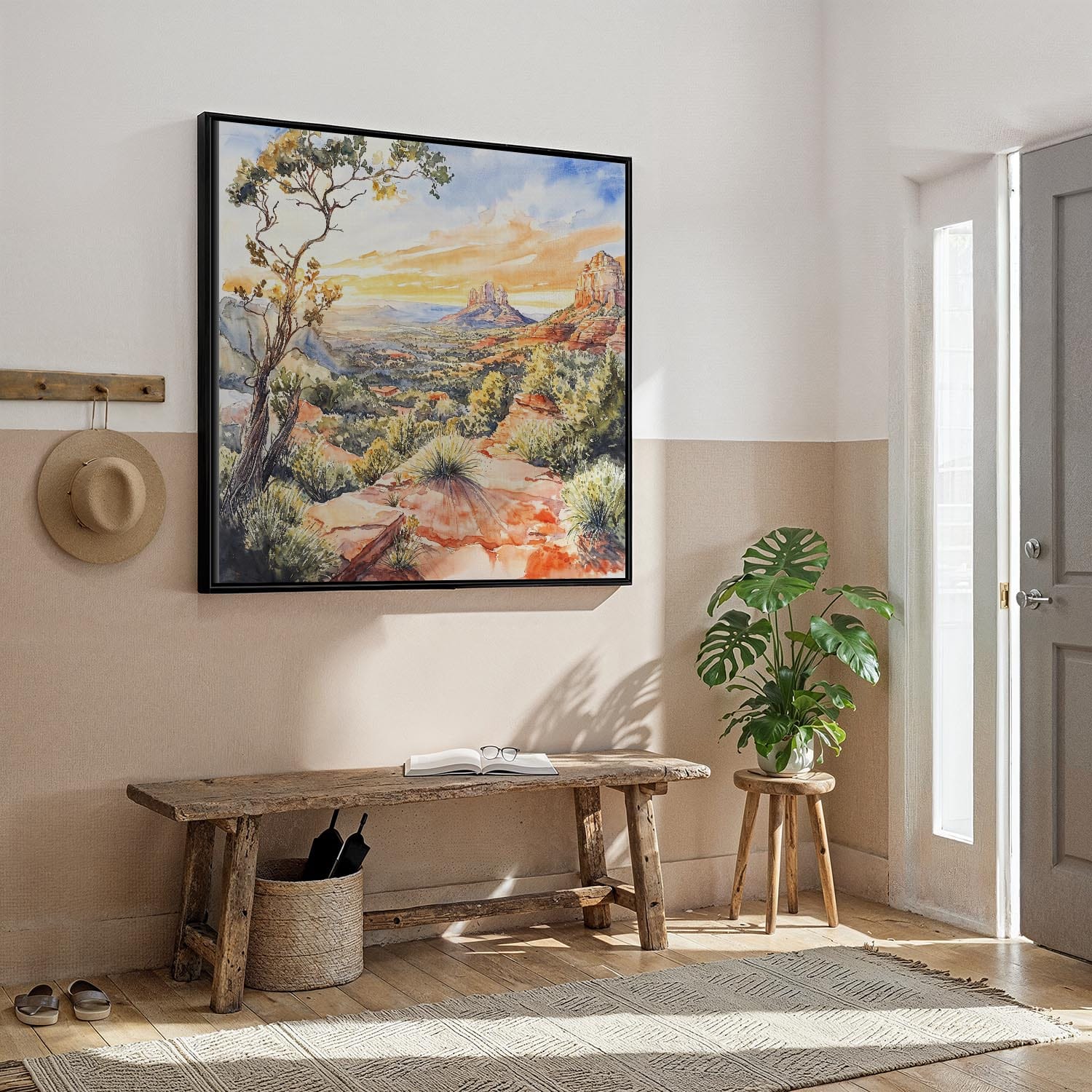 Sedona Arizona Watercolor Landscape | Square Canvas Print for Nature Lovers