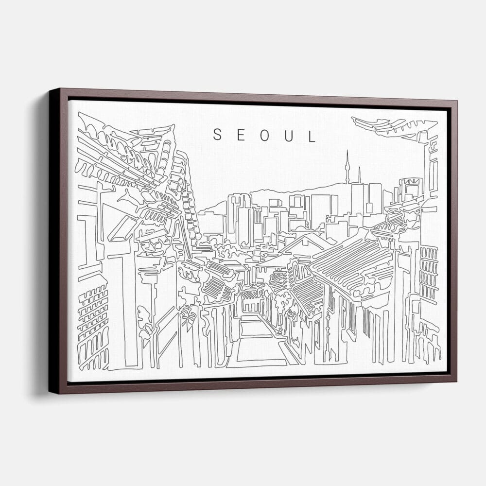 Minimal Seoul skyline canvas wall art with unique single line art of the cityscape. Coming in black and white, this special Seoul Korea canvas art print is a wonderful wall decor for minimalist homes and makes a special home decor gift for friends or family.