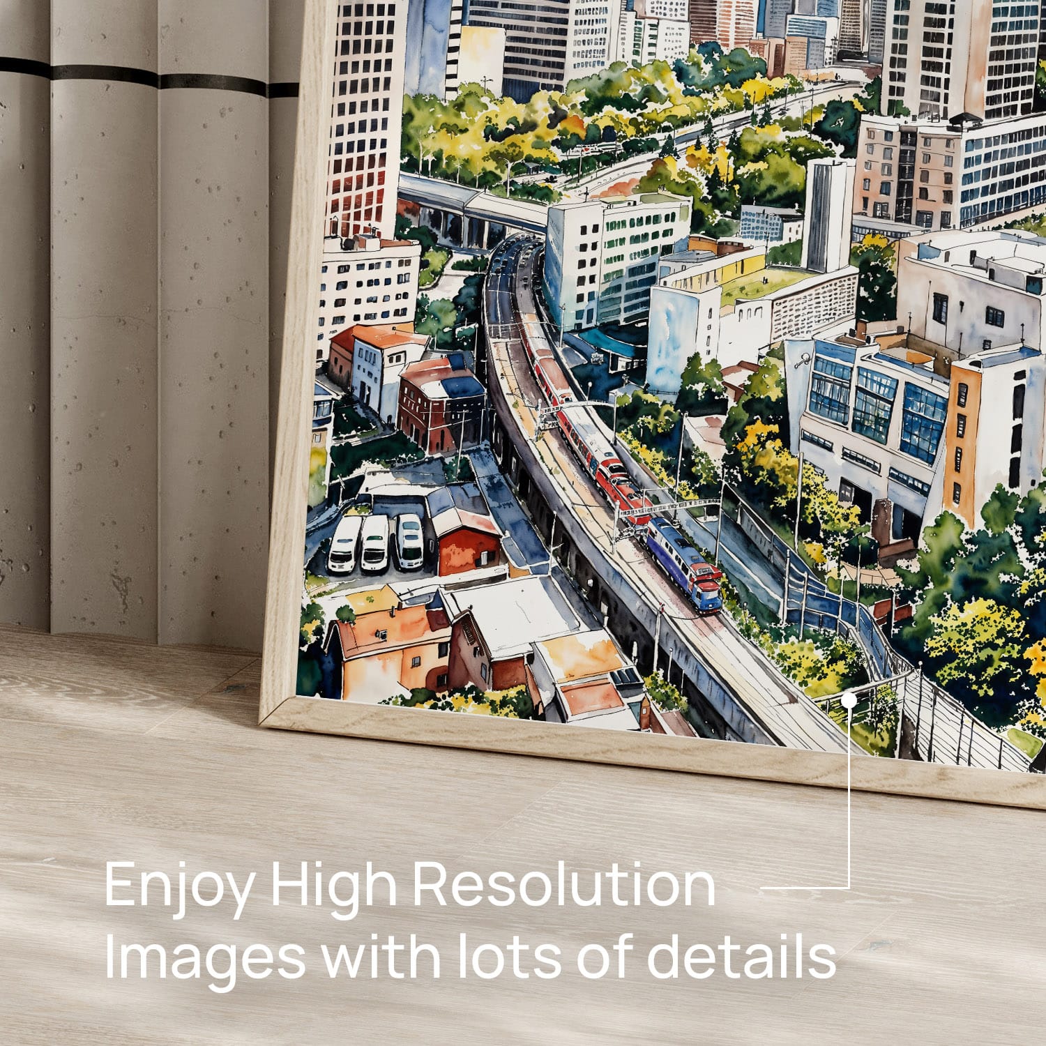 Seoul Skyline Watercolor Art Print – Vibrant Digital Download Wall Art
