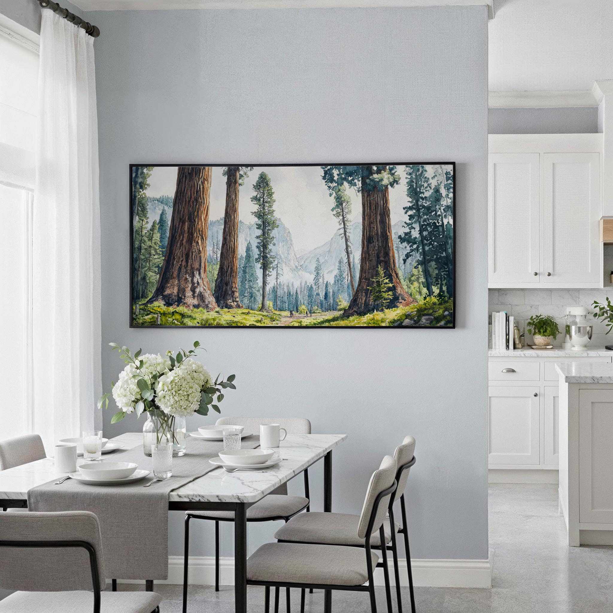 Experience the majestic beauty of Sequoia National Park with this canvas print, capturing the tall trees and rolling mountains in a soft watercolor style. The extra wide 2:1 format enhances the room’s atmosphere, adding depth and a sense of tranquility. Crafted in the United States, it features a hand-stretched canvas mounted on solid wood stretcher bars and printed with fade-resistant inks, ensuring it arrives ready to hang and made with sustainability in mind. Perfectly suited for placements above sofas, in hallways, or in creative offices, this piece could serve as a thoughtful gift or a cherished addition to your own home.