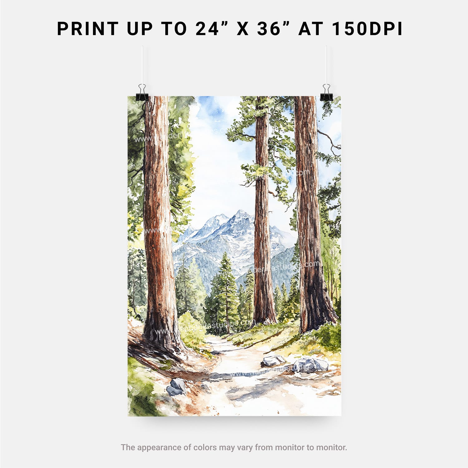 Sequoia National Park Watercolor Art – Beautiful Digital Download for Nature Lovers