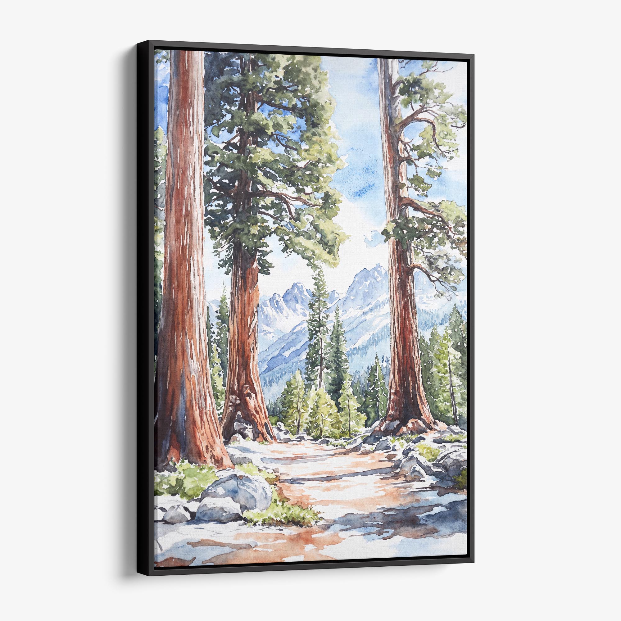 Sequoia National Park Watercolor Canvas Print – Vibrant Nature Landscape Art