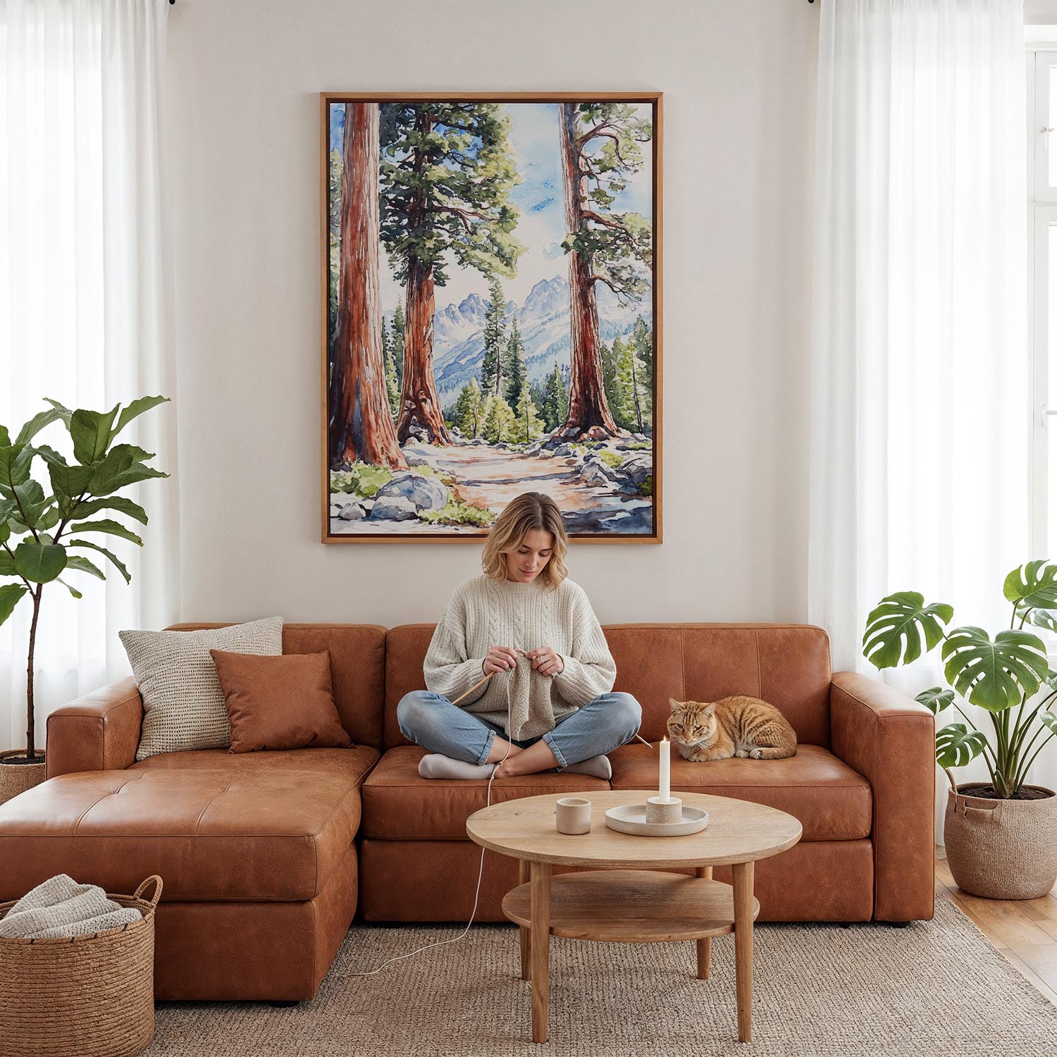 Transform your space with this Sequoia National Park canvas print. Showcasing majestic trees and mountain vistas, it’s an easy piece to hang in living rooms or offices.