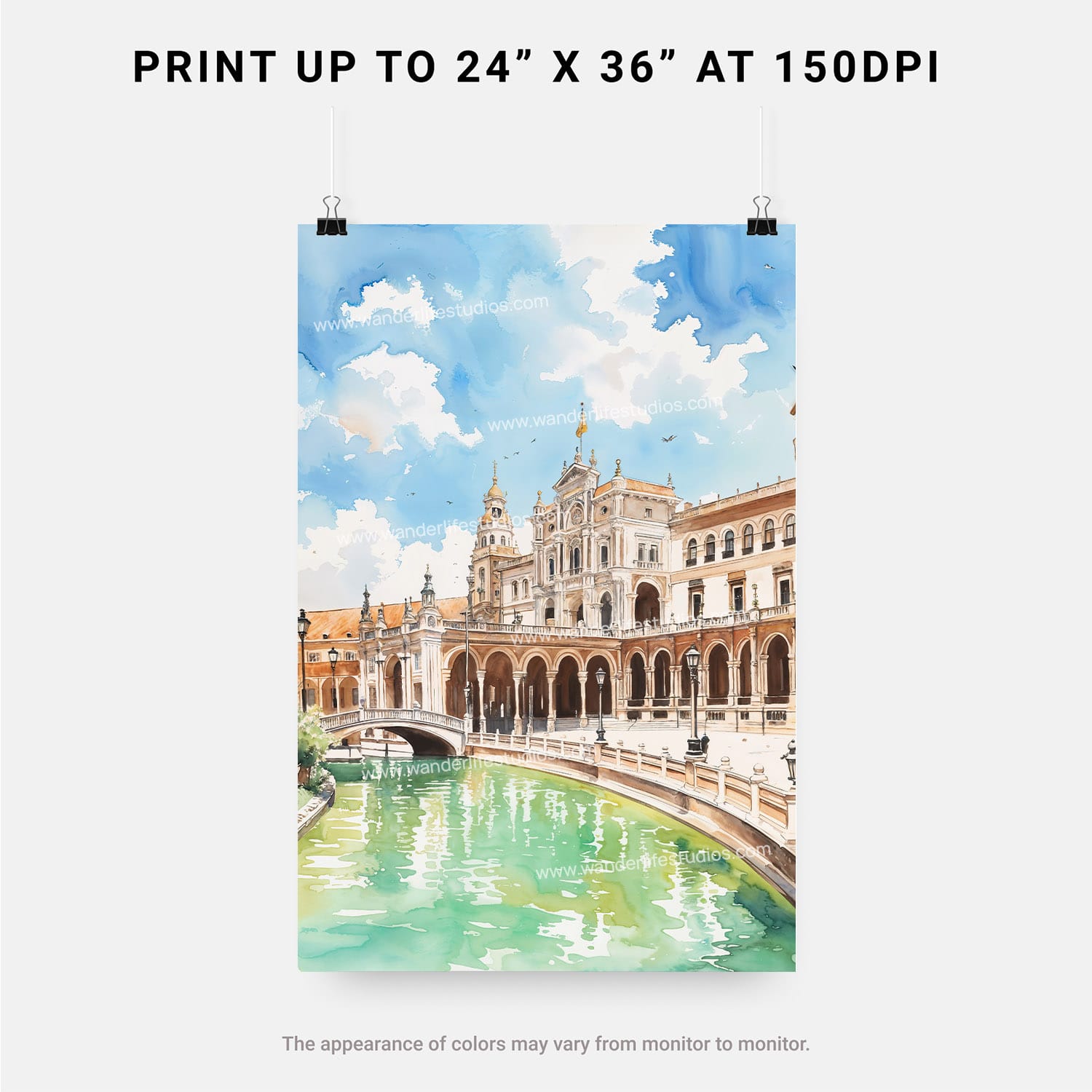 Seville Plaza De España Watercolor Art – Digital Download Wall Art