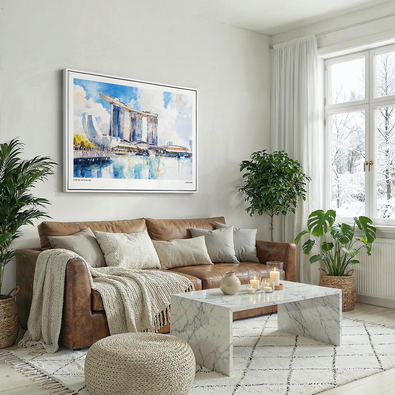 Singapore Marina Bay Sands Canvas Print – Watercolor City Skyline Art