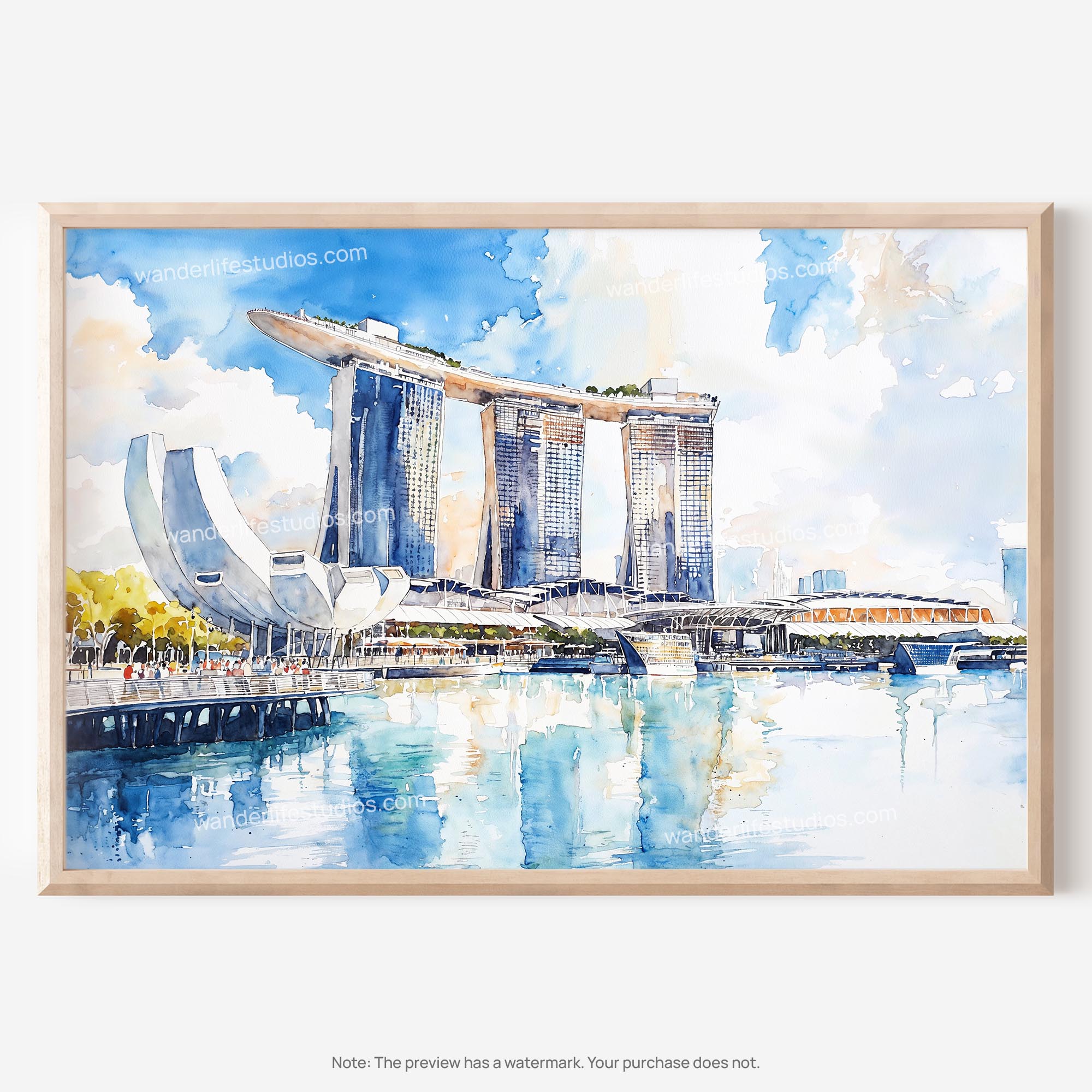 Singapore Marina Bay Sands Watercolor Art Print – Digital Download for Home Decor
