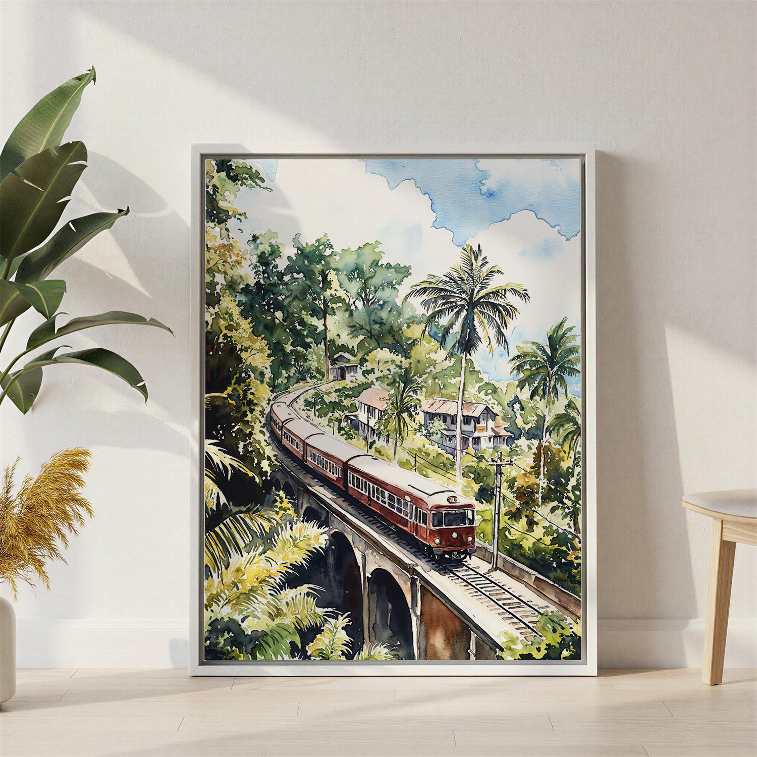 Sri Lanka Train Canvas Print – Watercolor Tropical Scene Sri Lanka Train Canvas Print – Watercolor Tropical Scene