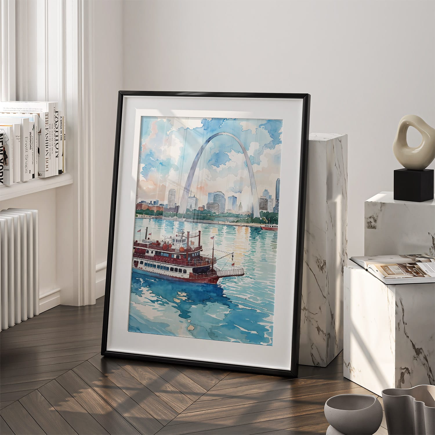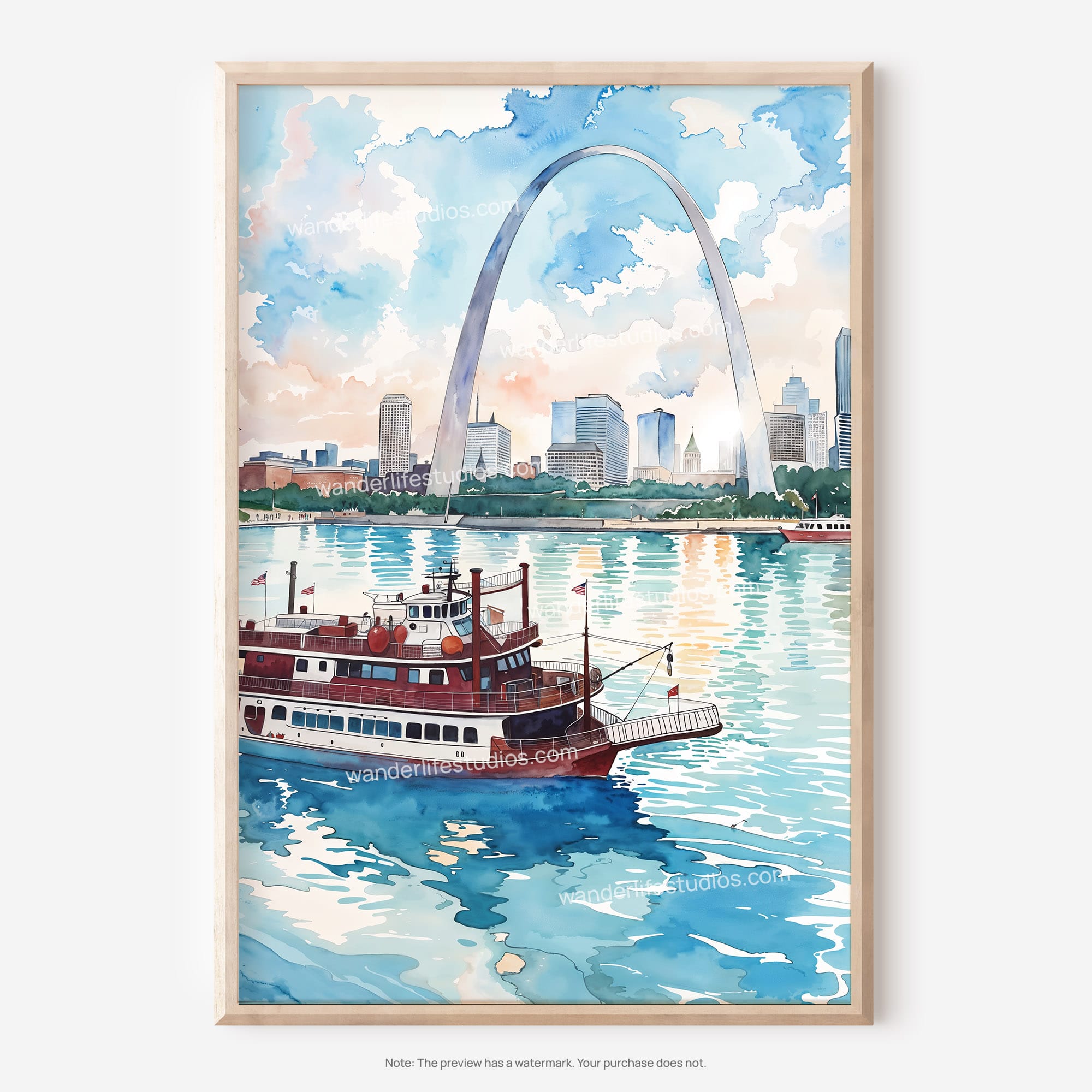 St. Louis Watercolor Art Print – Gateway Arch and Riverboat Digital Download
