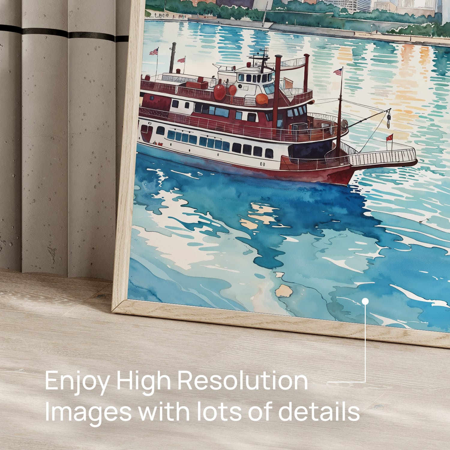 This artwork showcases the vibrant scene of St. Louis, highlighting the iconic Gateway Arch along with a riverboat on the water. The soft blues and warm tones invite a cozy atmosphere into any room. Delivered as a high-resolution digital file, it allows you to easily print at home or through a local print shop. This piece suits various settings, from living rooms to offices, and is a delightful addition for anyone who loves the city. Enjoy instant access to refresh your walls effortlessly.